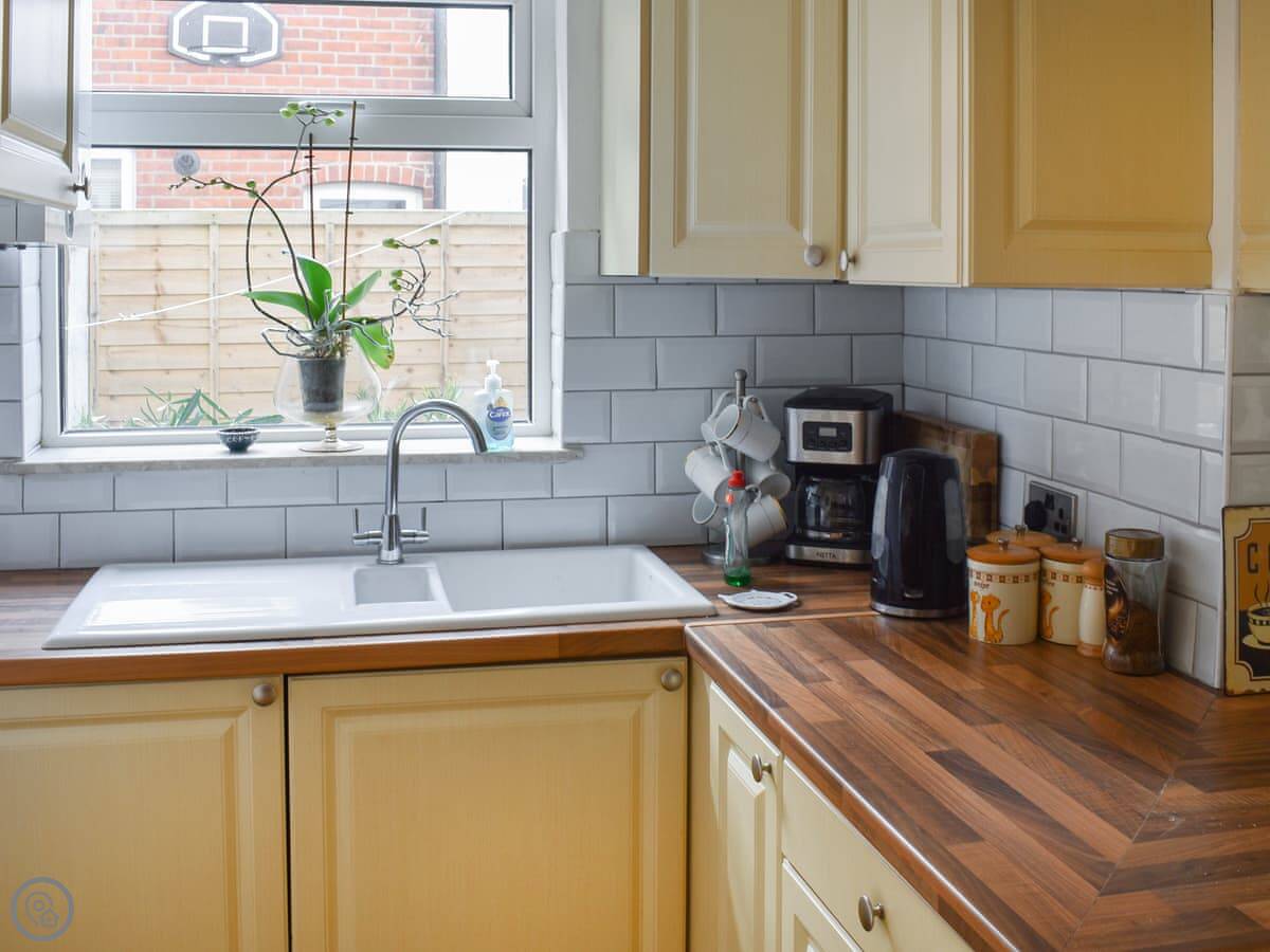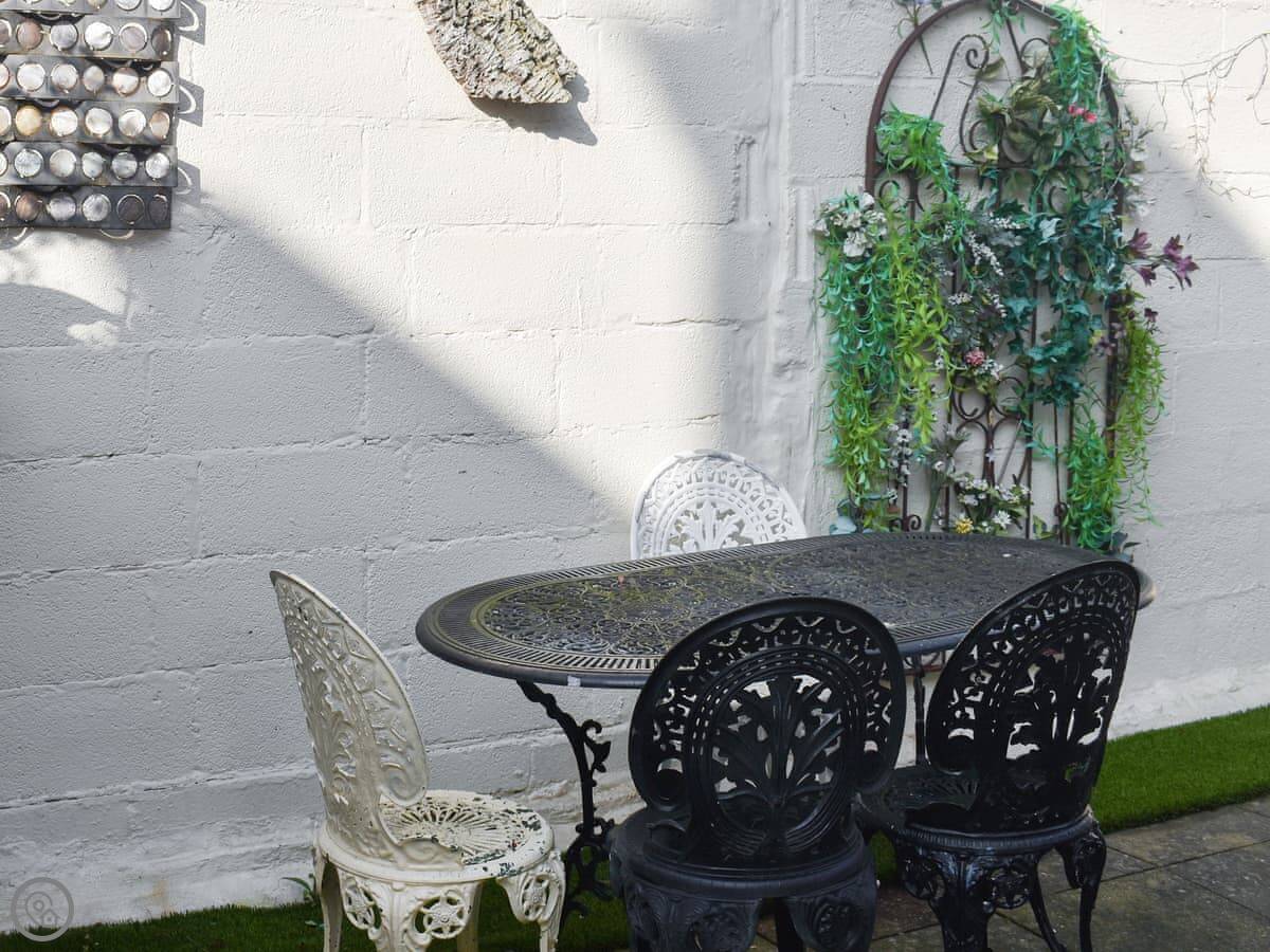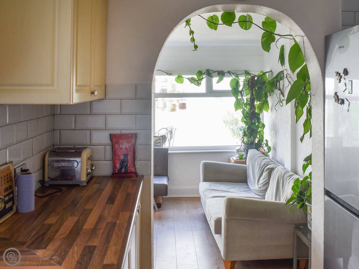 There's a conservatory off the kitchen. It's good for when it's raining. The garden is enclosed. It's got a patio area with a BBQ. You can park on site.