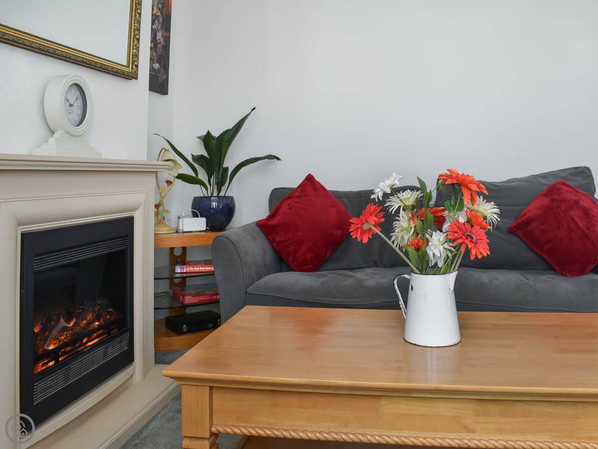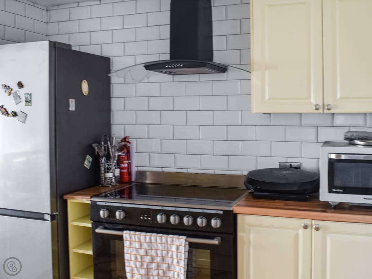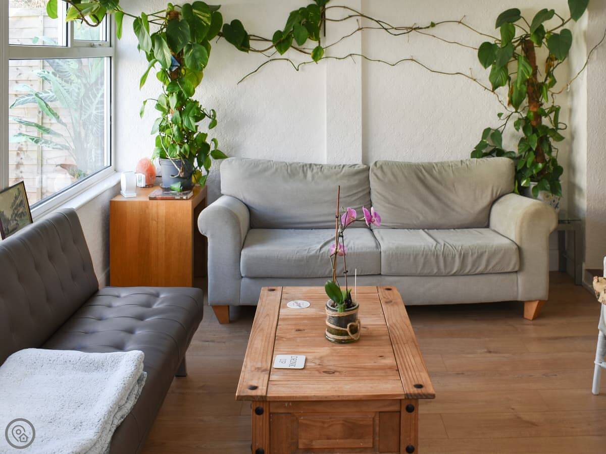 There's a conservatory off the kitchen. It's good for when it's raining. The garden is enclosed. It's got a patio area with a BBQ. You can park on site.