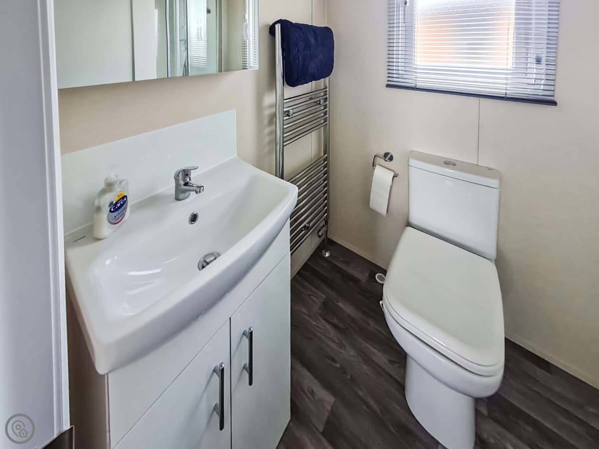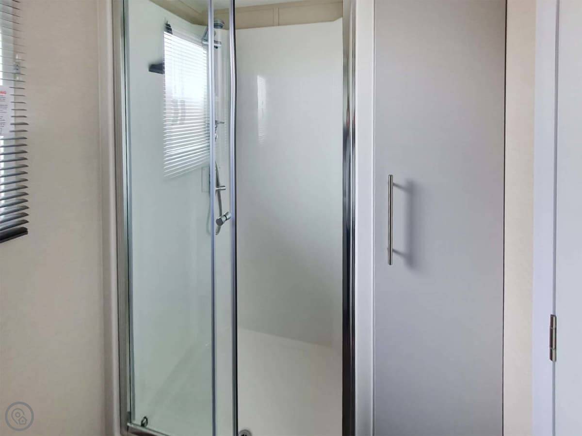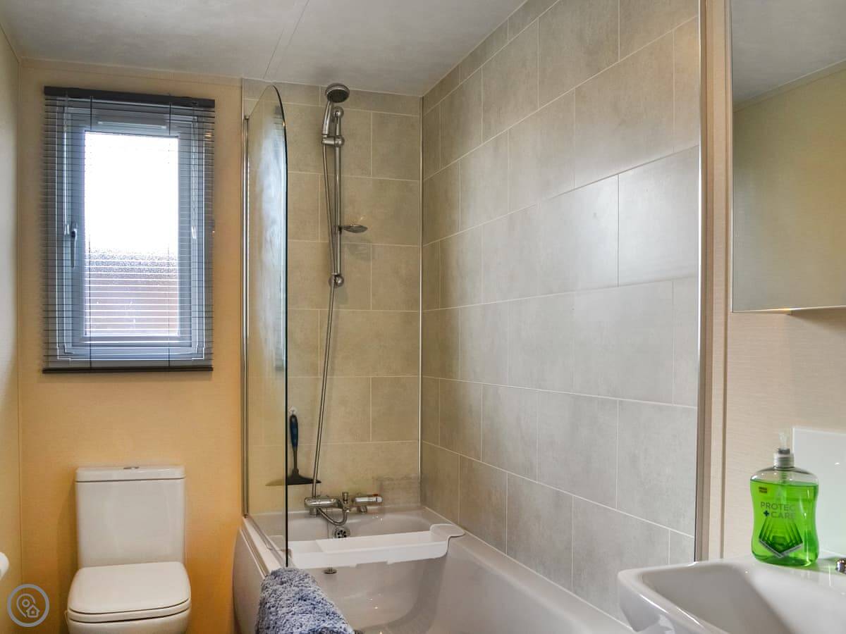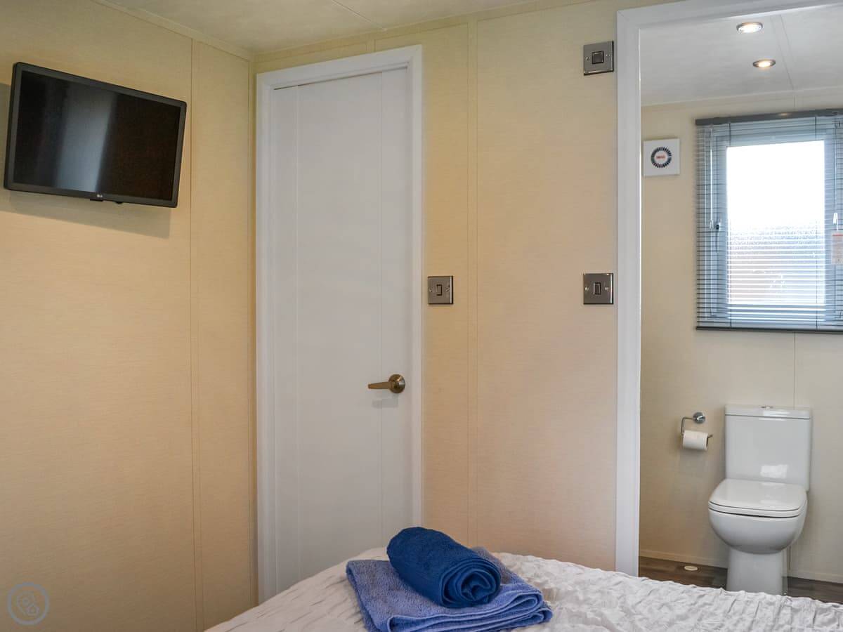 It sleeps four. Two bedrooms. One is a kingsize with an ensuite shower, the other is twin beds. There's a main bathroom with a bath and shower over it. Both bathrooms are modern.