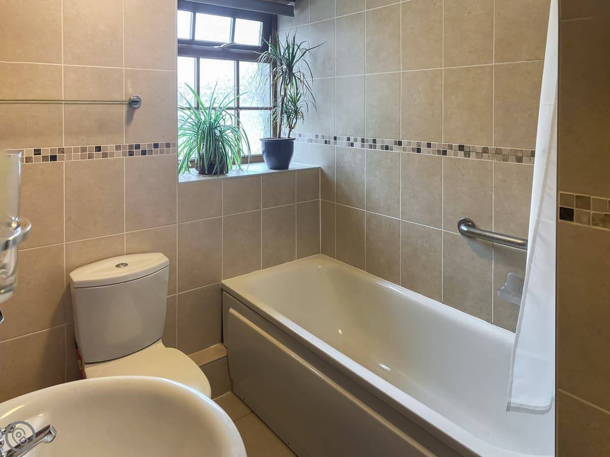 Outside, there's a deck at the front with chairs, and a walled garden at the back with a barbecue. It's private. You can park right there.
