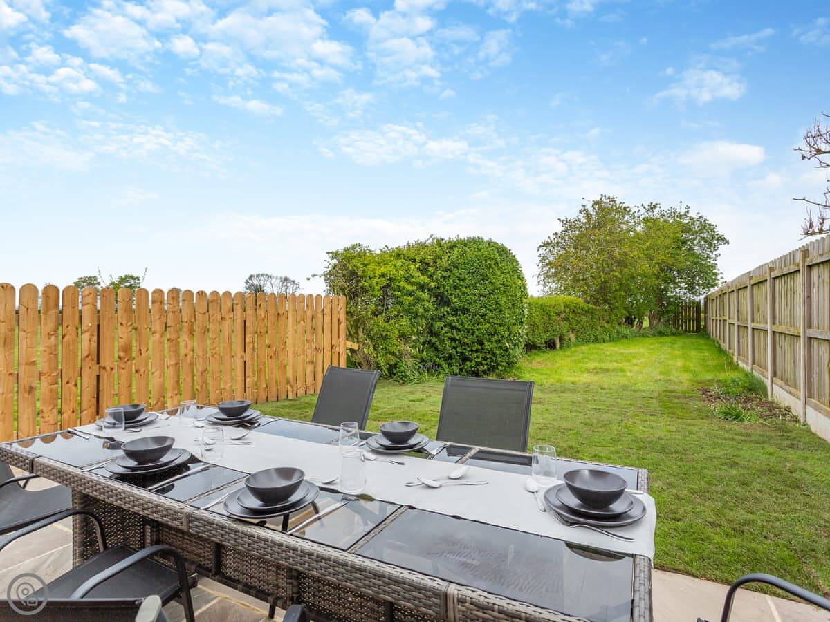 Outside there's a patio with garden furniture and a barbecue. The garden is private.