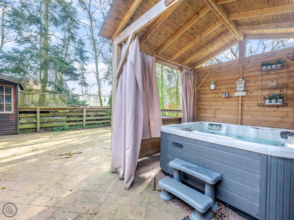 Outside, there's an enclosed garden that's just for you. It's got a hot tub. There's parking for two cars right by the house.