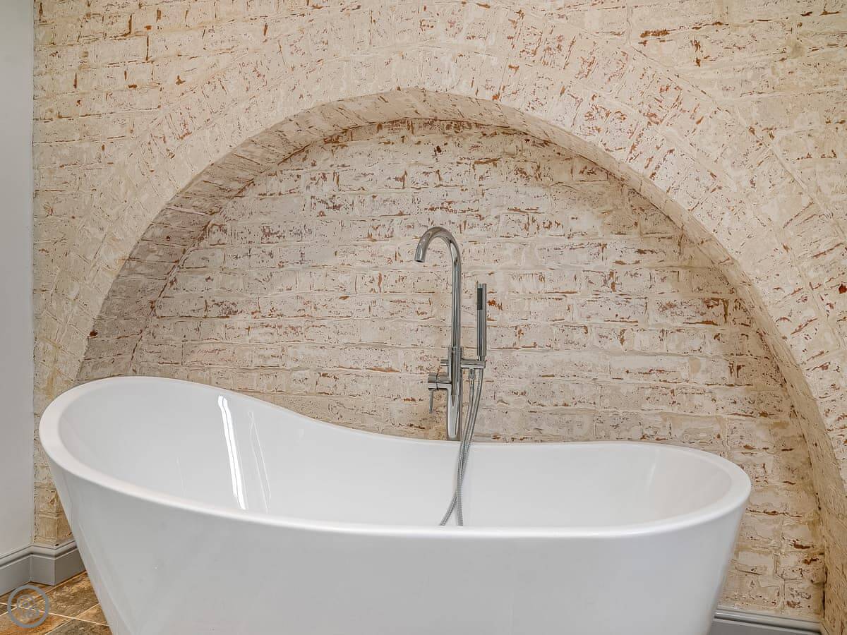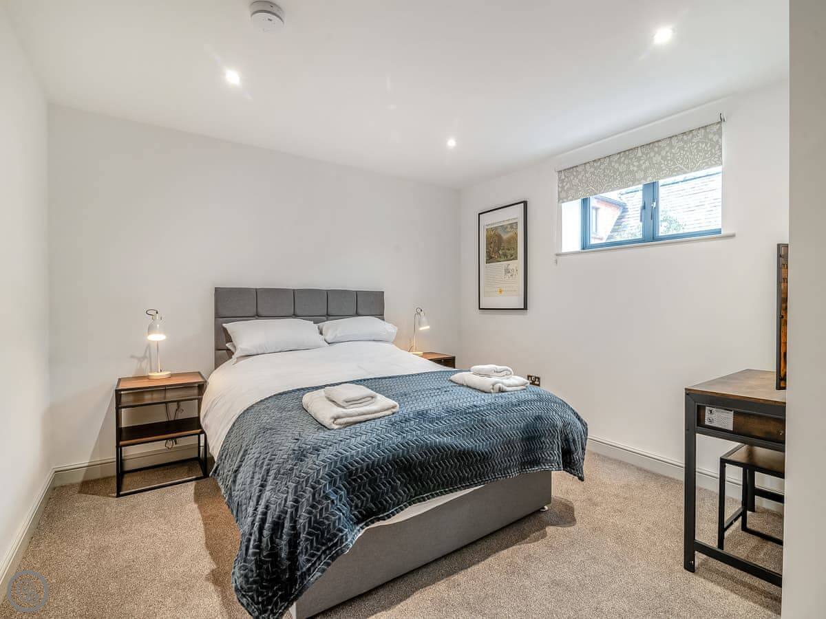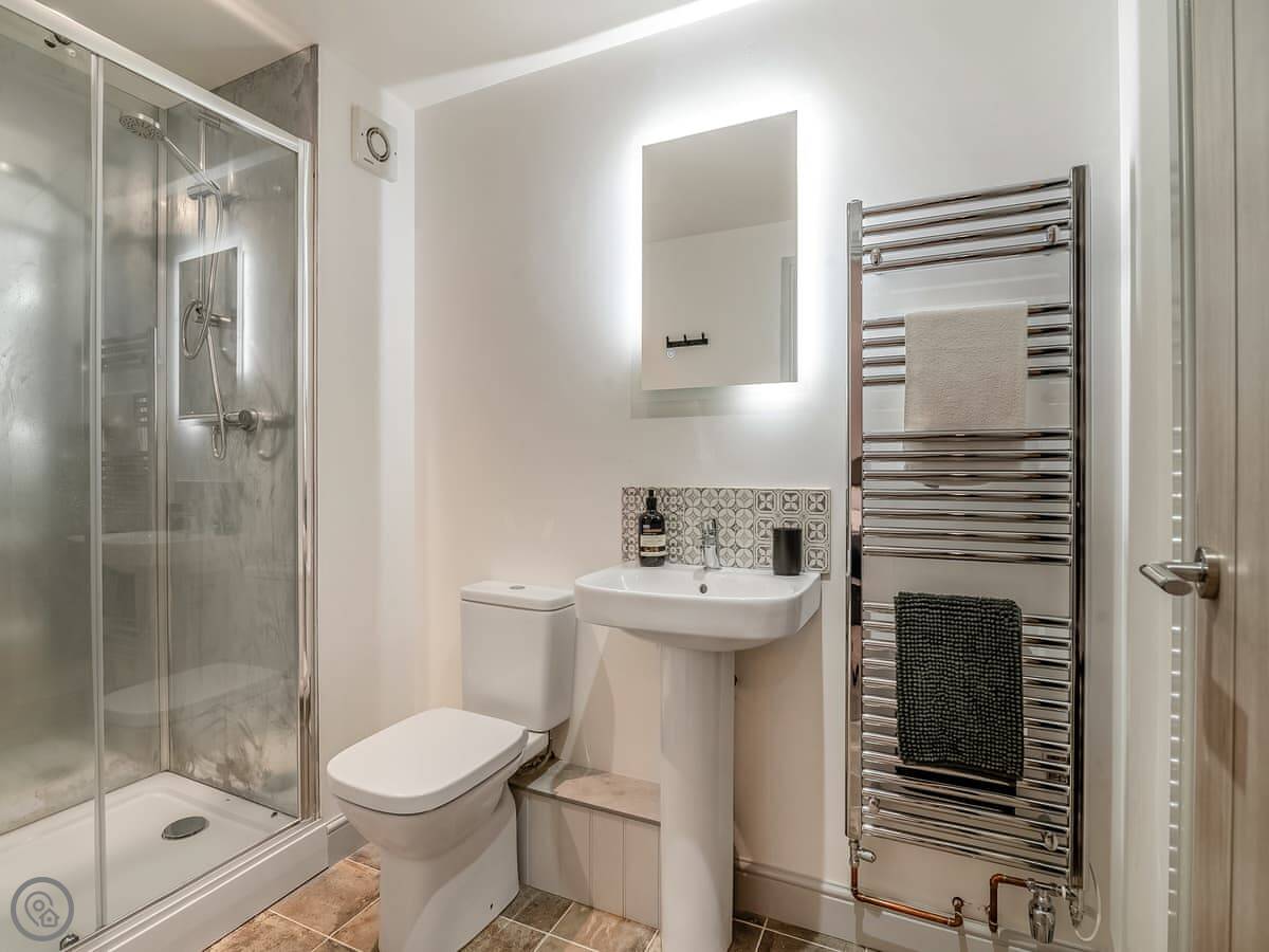 Outside, there's a paved courtyard with a BBQ and a wood-fired hot tub. You have to light the hot tub yourself, it takes a few hours to heat up. The farm has big fields you can walk in, and they're enclosed, so dogs are fine.