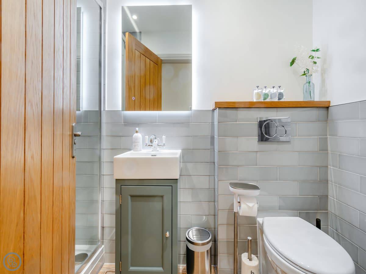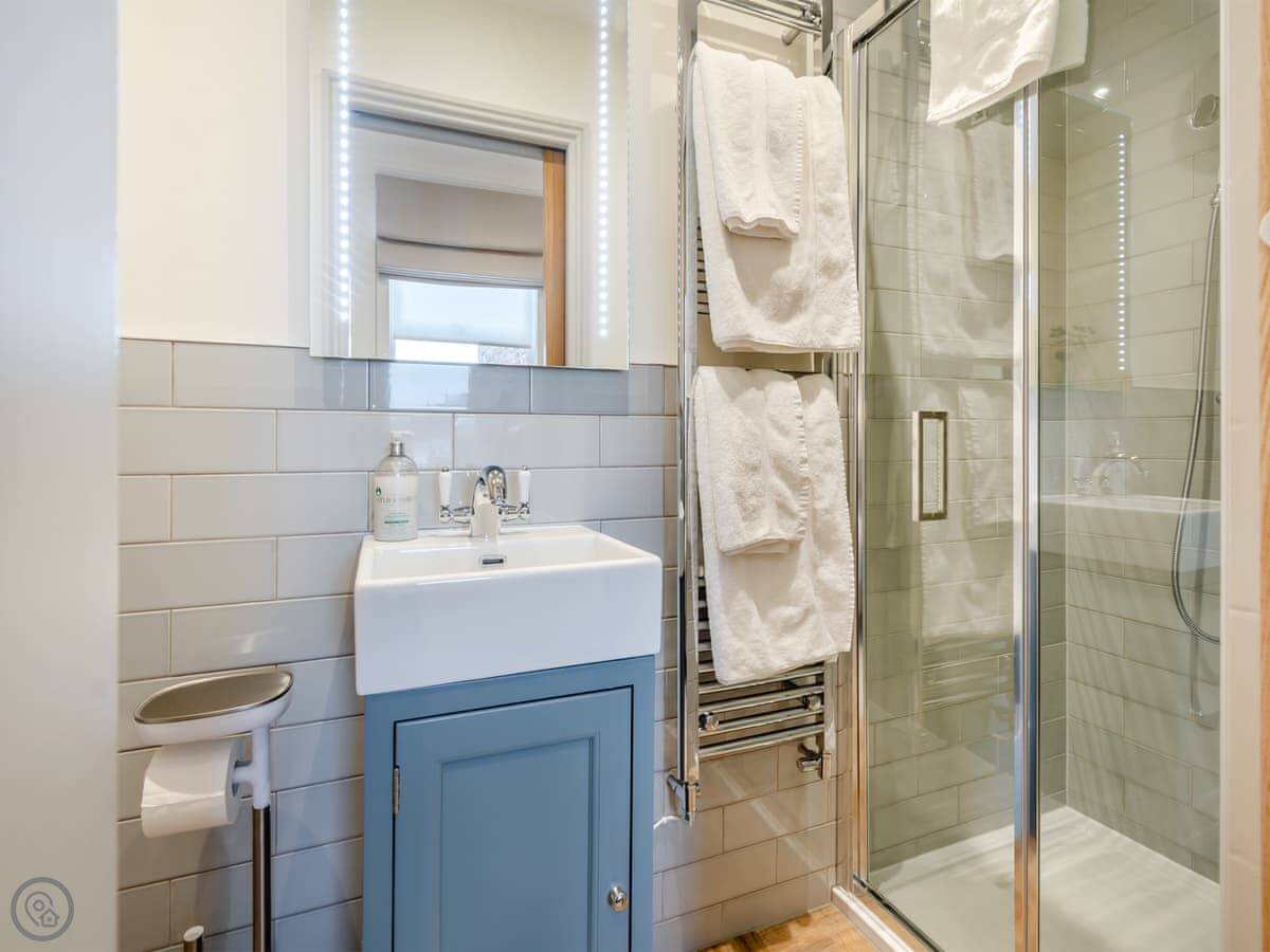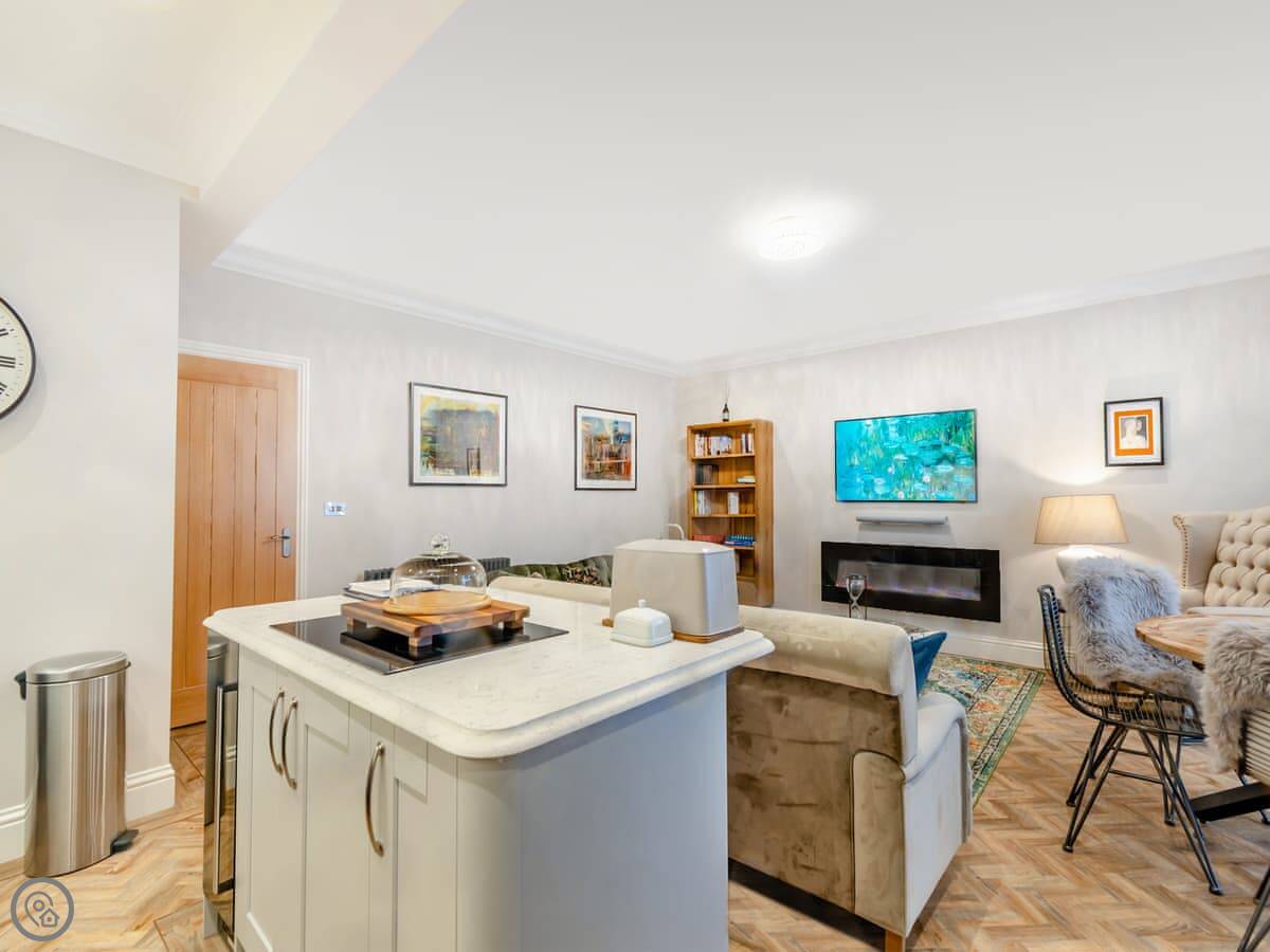 It sleeps six. Three double bedrooms, and three bathrooms. Two are en-suites. It's got a 5 Star rating, which means it's well finished and comfortable. The living area is open plan. The kitchen is good if you like to cook.