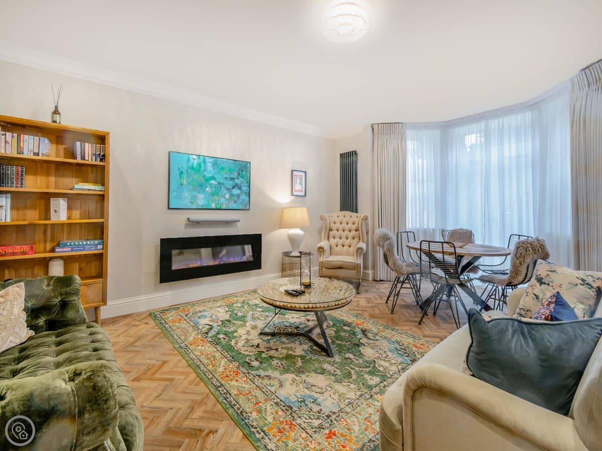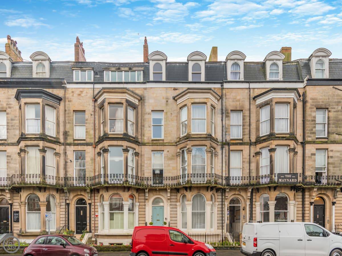 This is Everley. It's a flat in a big old townhouse on the South Cliff in Scarborough. There are three other apartments in the same building if you're coming with a bigger group.