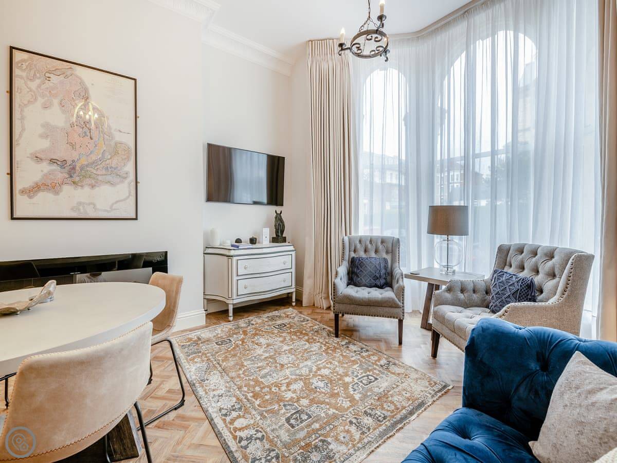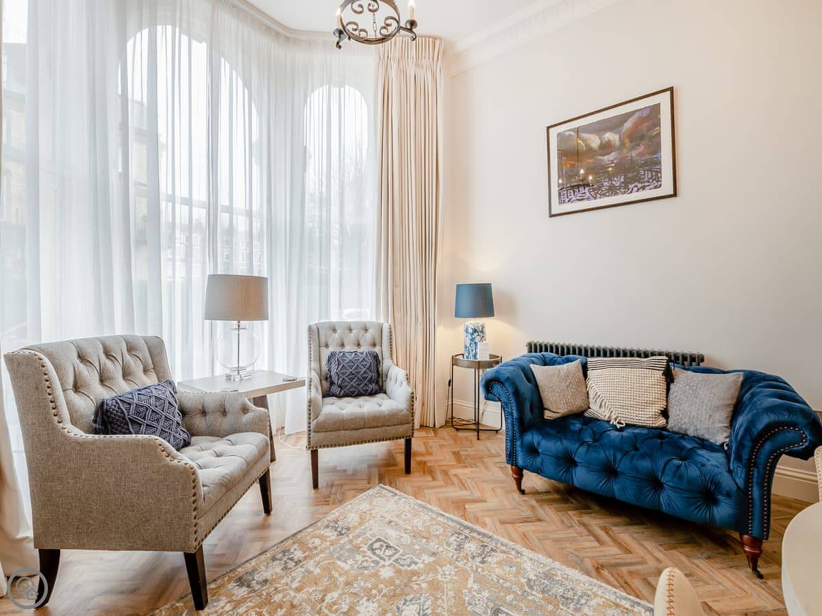 This is the Harwood apartment at Derwent House in Scarborough. It's part of a big old townhouse that's been done up. You're on the ground floor.