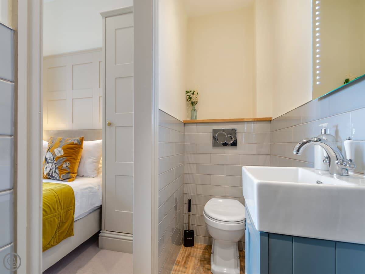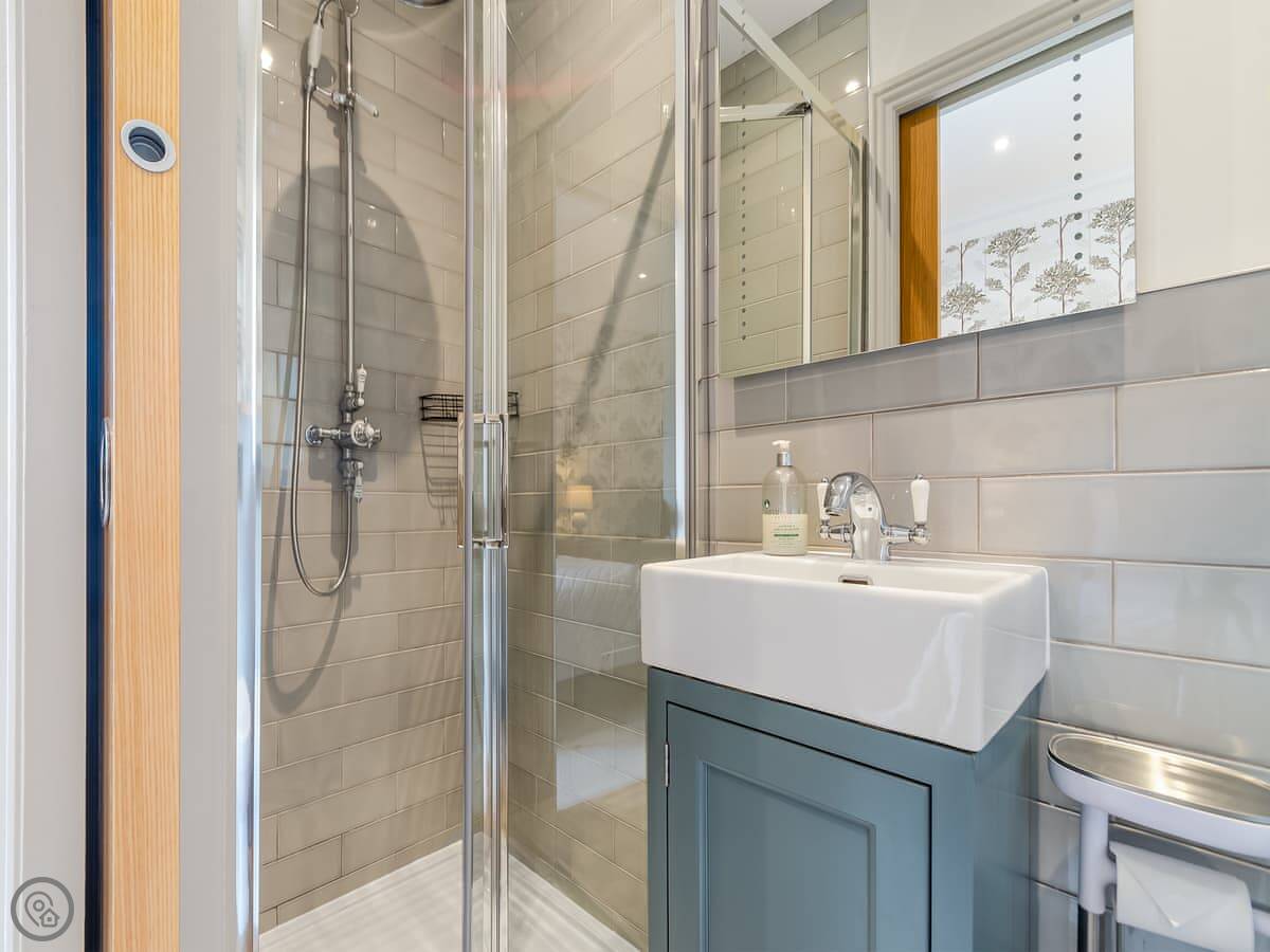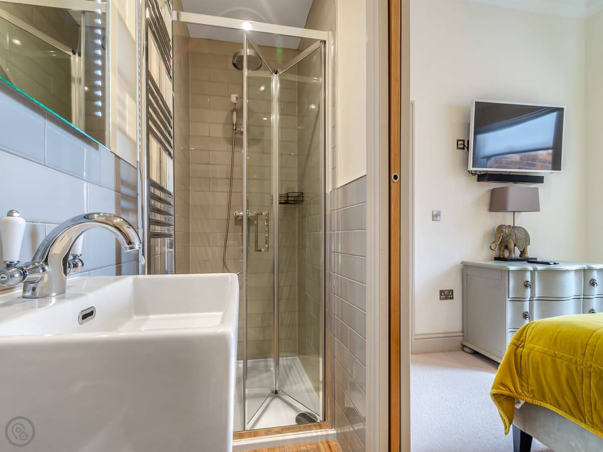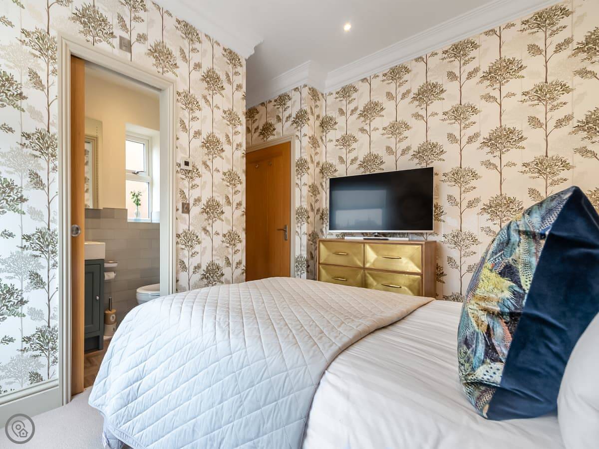 It's a three bedroom place, sleeps six. Each bedroom is a double. They all have a TV. There are three bathrooms too, so no queues in the morning. It's a 5 Star place, which means it's been done to a high standard.
