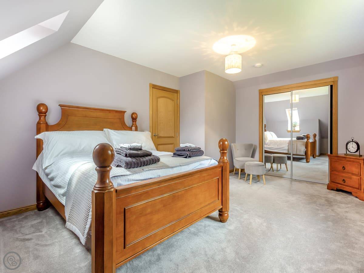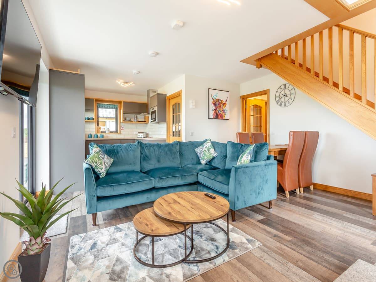 The house sleeps four. There are three bedrooms and two bathrooms, which is handy. It's got a 5 Star rating, so everything's in good order. It's open plan downstairs. There's a wood burning stove, which is nice in the evenings.