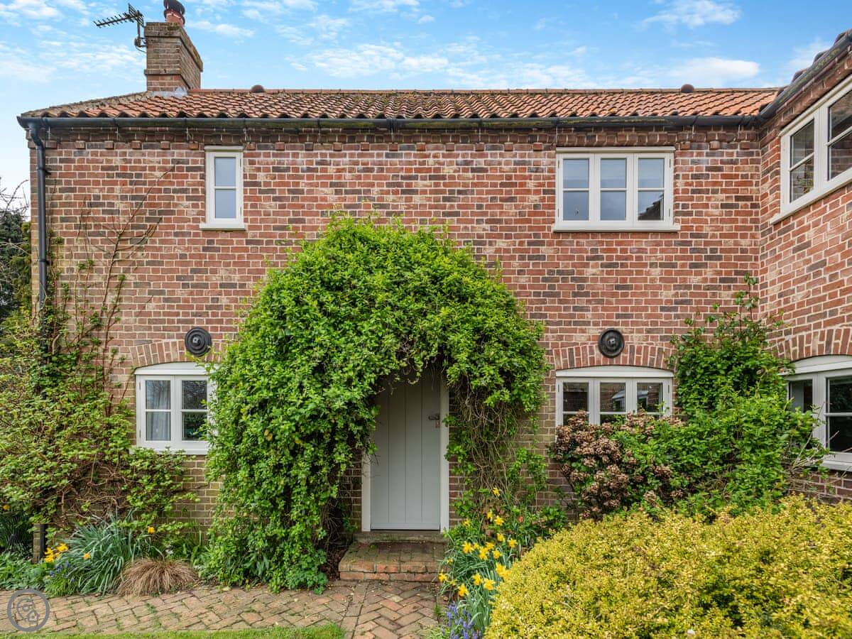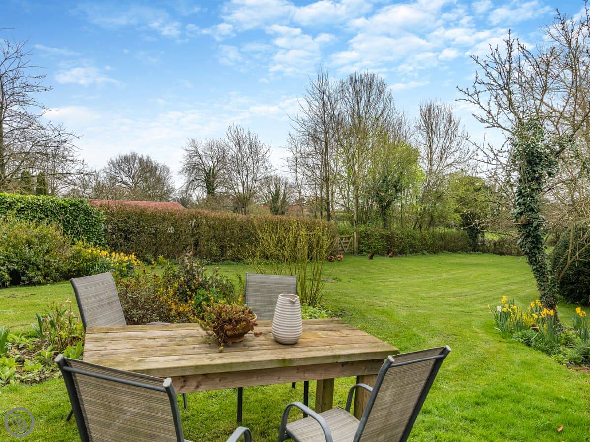 This is number 2 Swallow Cottages in Wickmere. It's one of a pair. You rent one cottage, but the other might be occupied, so you get your own garden. The garden is big and looks out over fields.