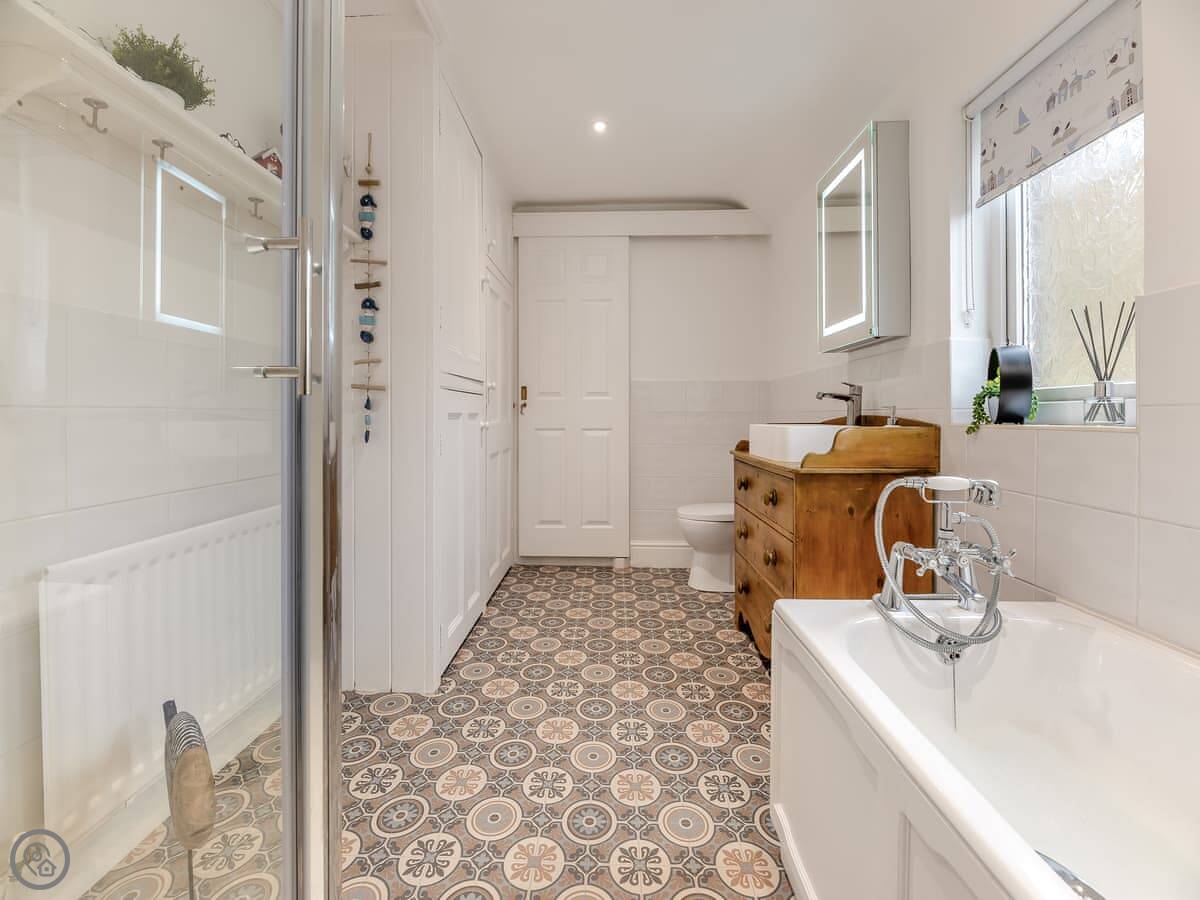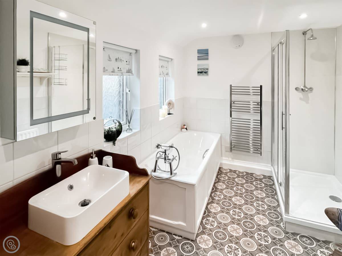 Puffling Cottage is in Amble, Northumberland. It sleeps six, though there are only two bedrooms. One has a kingsize bed that can be split into two singles. The other has a bunk bed. There's one bathroom with a bath and a separate shower.