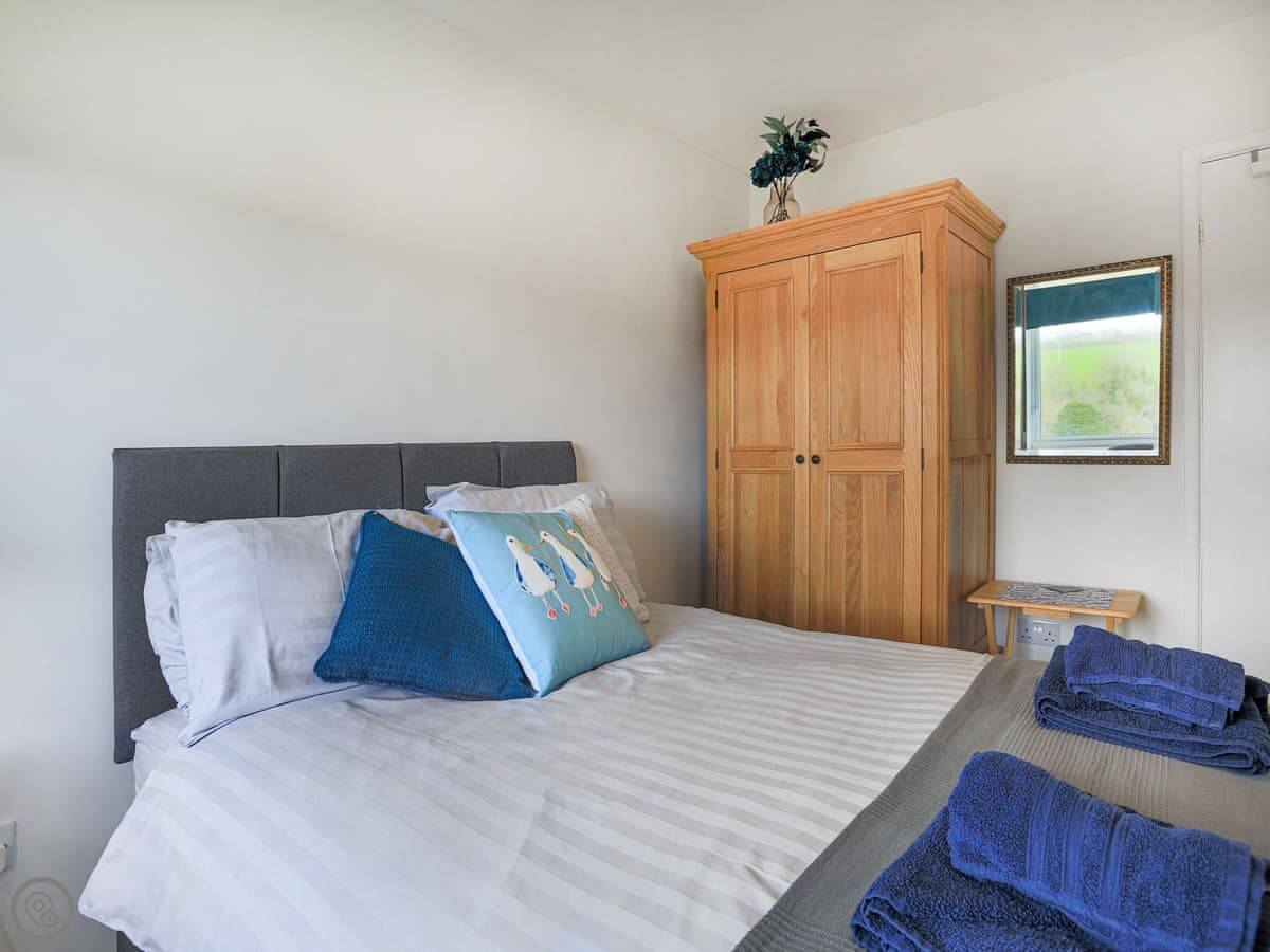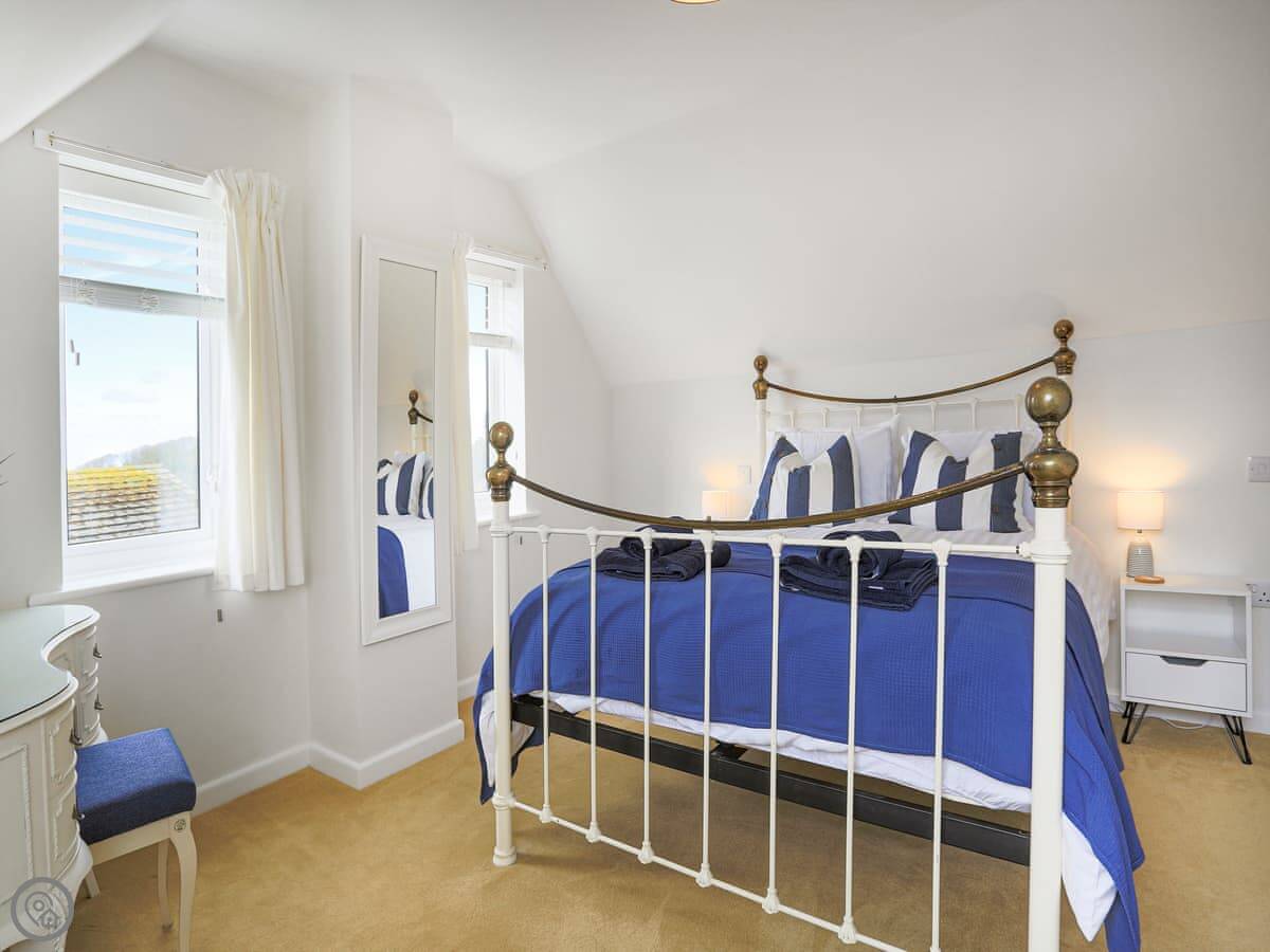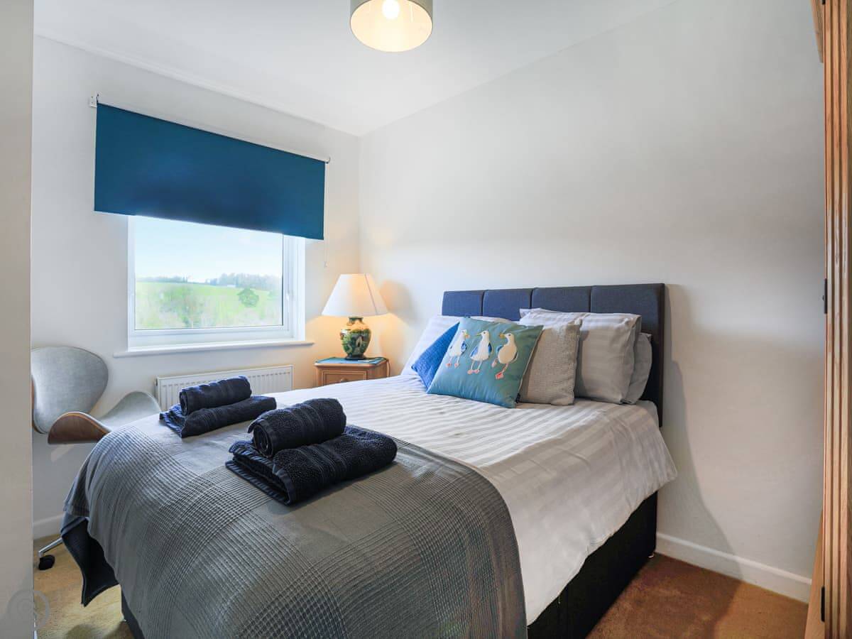It sleeps five. There are three bedrooms and one bathroom. Two bedrooms are upstairs. One bedroom is on the ground floor, which might suit someone who doesn't want to do the stairs. The bathroom is upstairs and has a shower cubicle, no bath. It's a 4 Star property, so it's comfortable and well equipped.