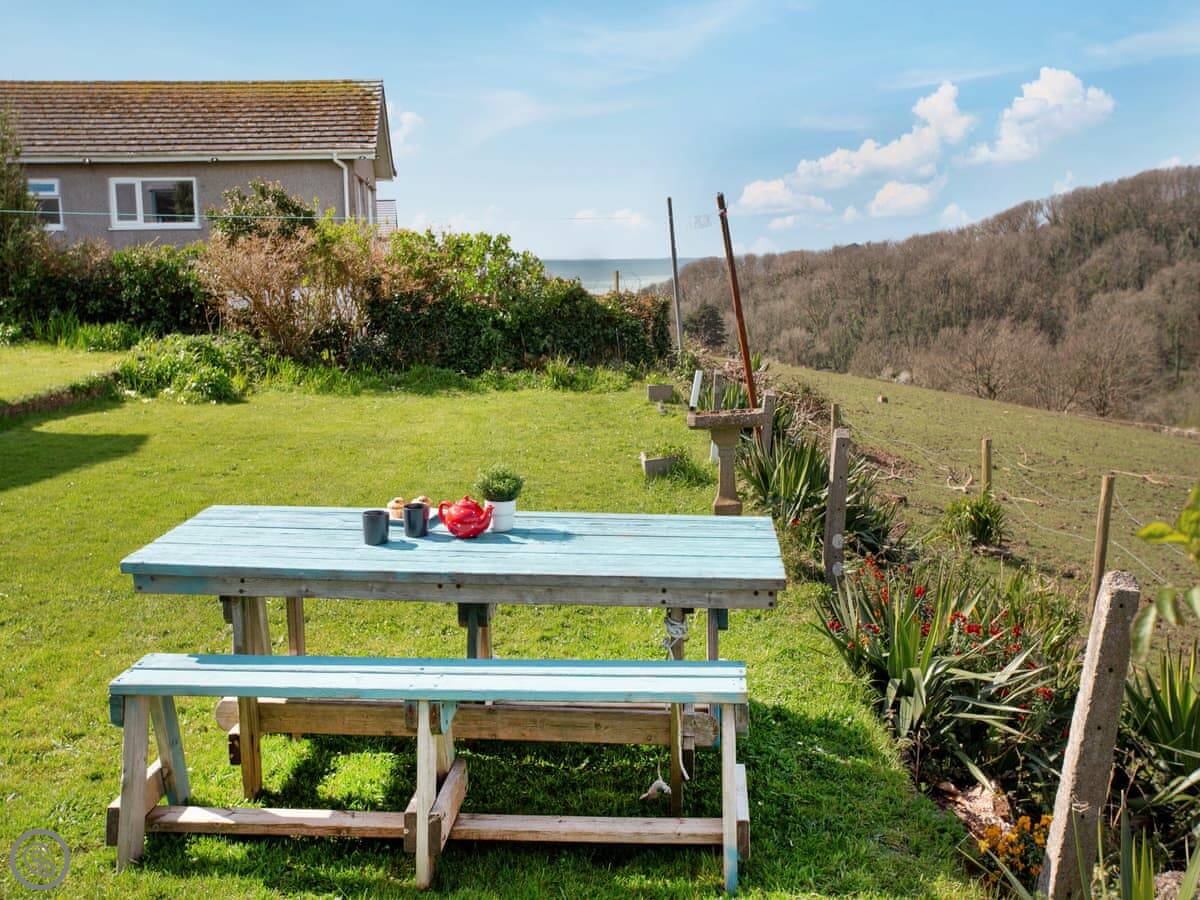 Sea Breeze is in Wembury. It's a detached house, so you're not sharing any walls. You can see the sea from the upstairs front bedroom.