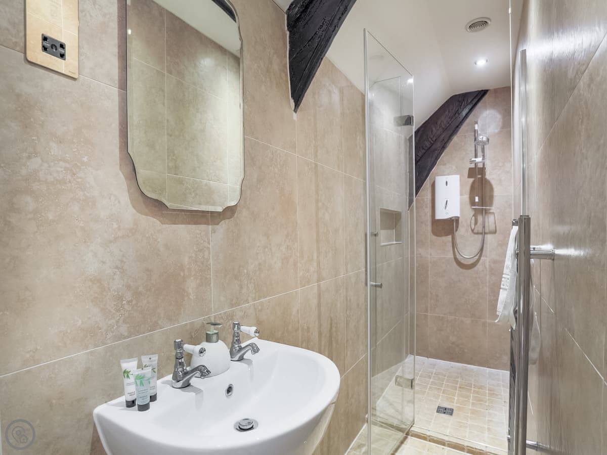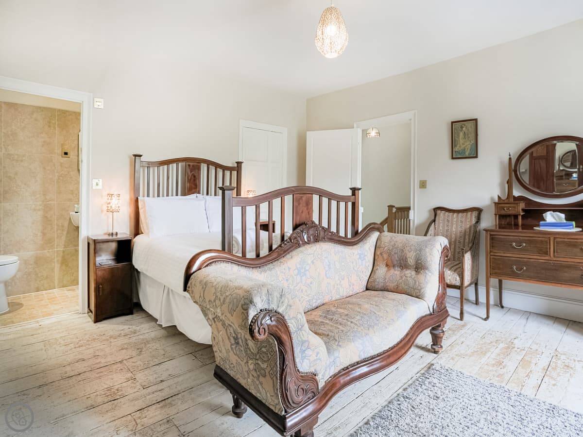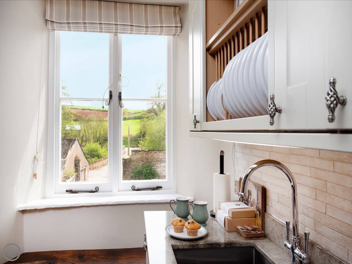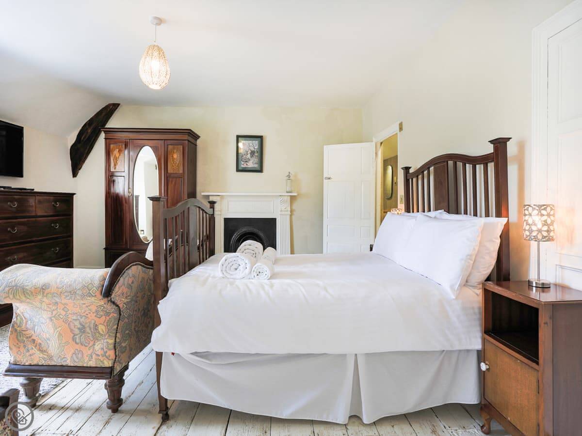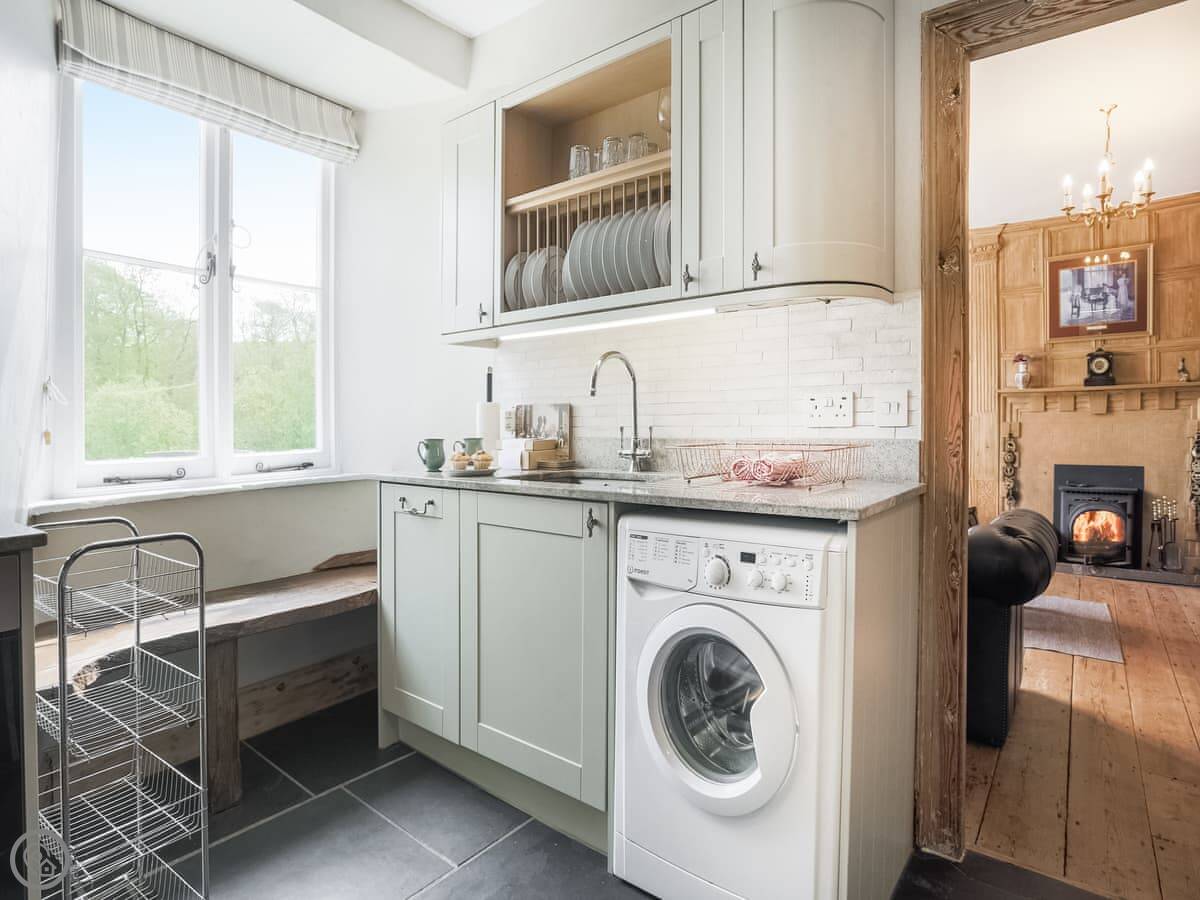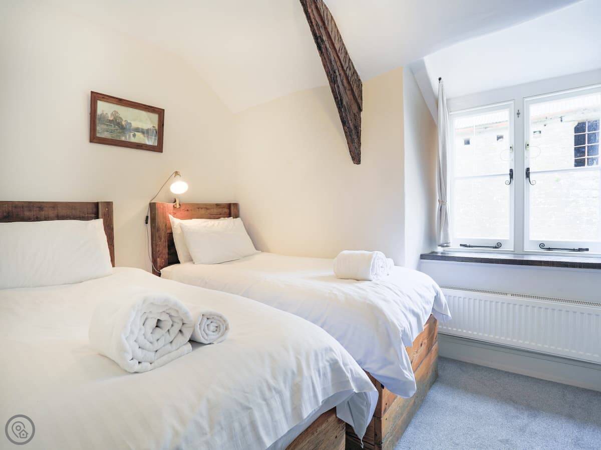 It sleeps six people in three bedrooms. There are two bathrooms, one is an en-suite. The stairs are the original ones, so they're a bit steep and uneven. The sitting room has a wood-burning stove and two large sofas. The kitchen has a Rayburn range cooker and a proper electric oven, plus a washer/dryer. The floor is slate, which is cold underfoot, so you might want slippers.
