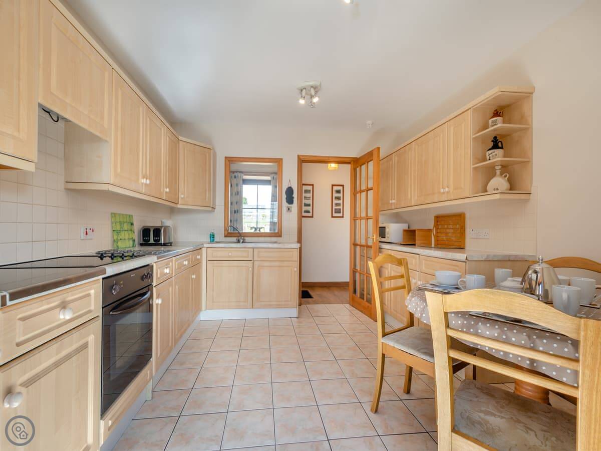 You can bring up to two dogs. There's a washing machine and a dishwasher. Bedding and towels are included, and there's a cot if you need it. Parking is on site. The garden is private, with a patio area.