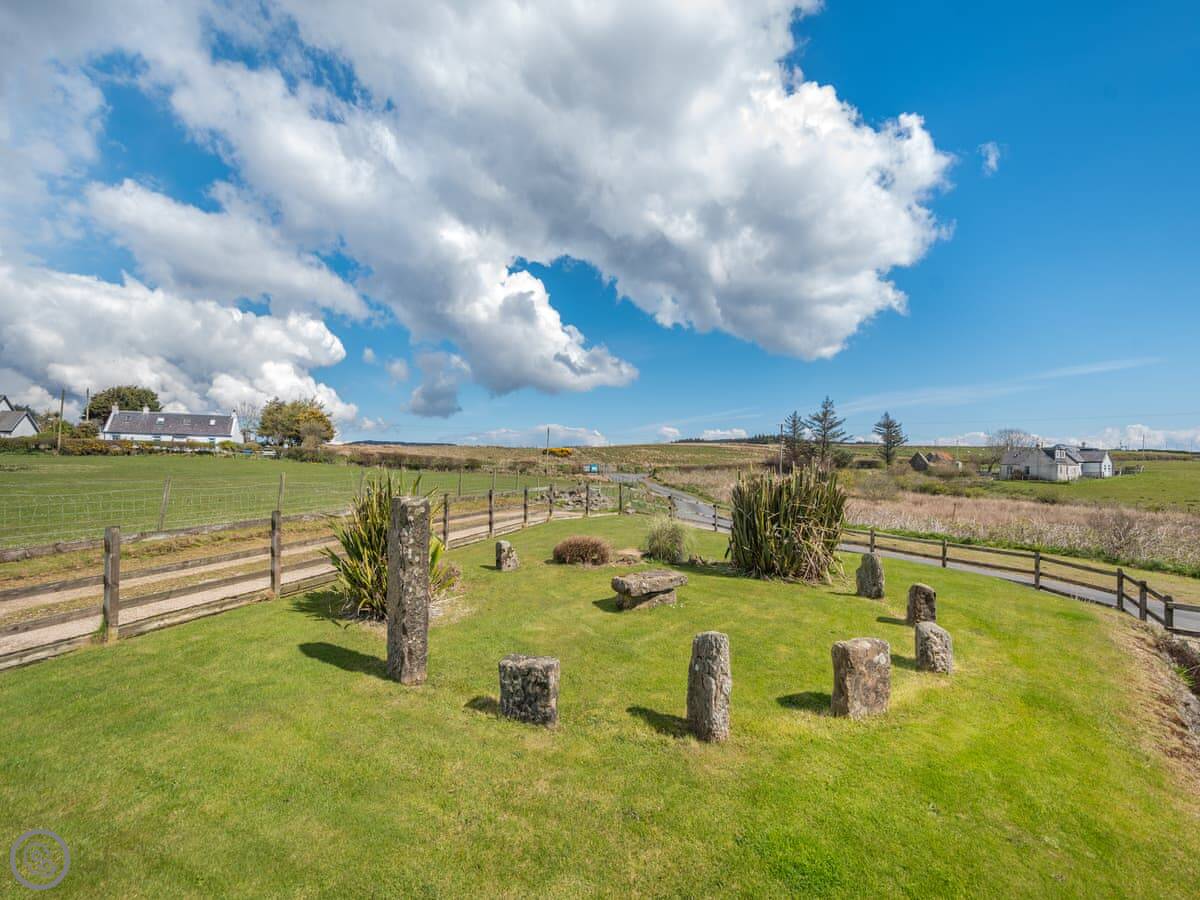 Eryb Cottage is in Shannochie, on Arran. It's a detached cottage with a sea view. The garden is unusual, there's a stone circle in it. It was on a garden makeover TV programme a while ago.