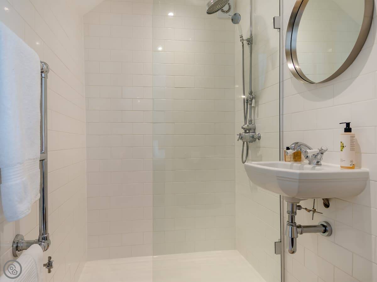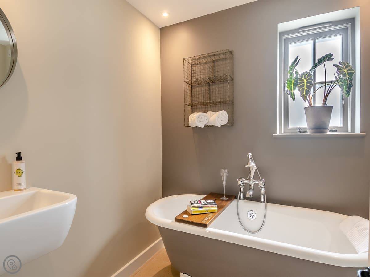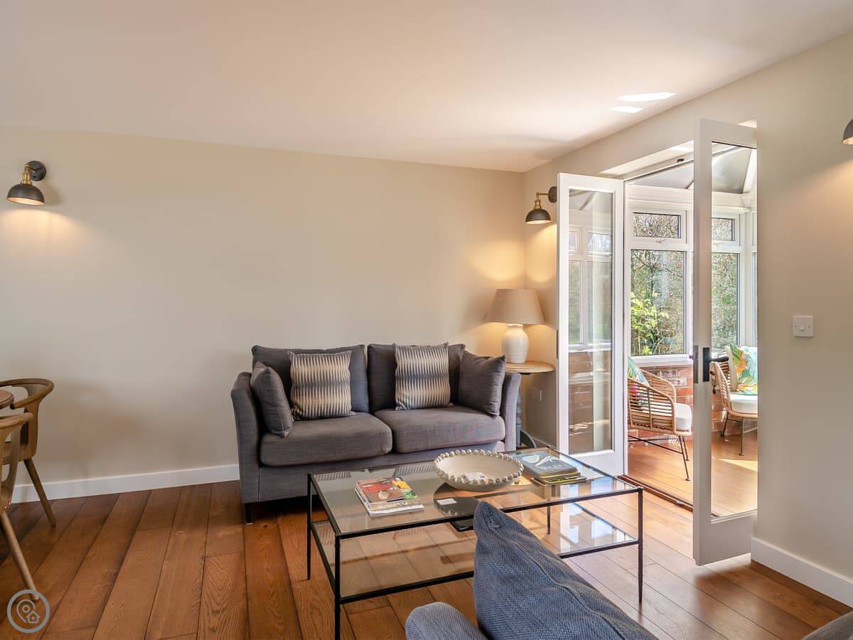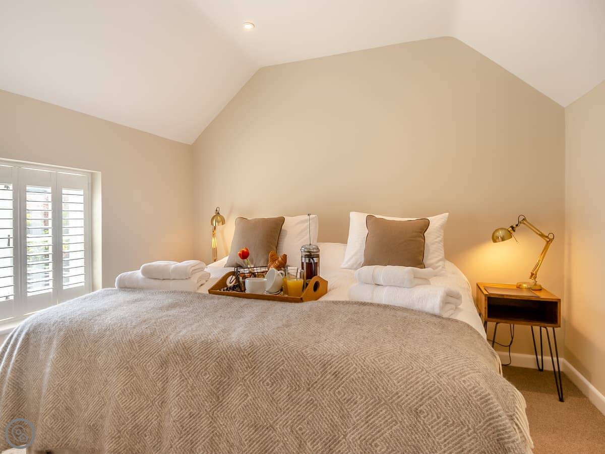 It sleeps four. Two bedrooms and two bathrooms, which is useful. One bedroom is on the ground floor with twin beds. The other is upstairs with a super king bed and its own shower room. The main bathroom is downstairs. It has a 5 Star rating, so it's well equipped and finished to a higher standard.
