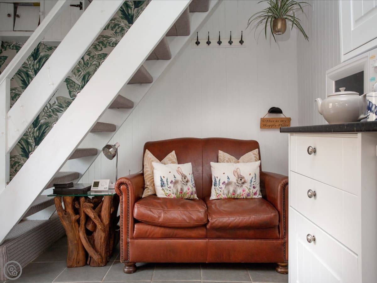 The first floor is the main living room. It's a good, bright space. There's a wood burner. The sofa folds out into a double bed for the extra two guests. The stairs between all the floors are quite steep, so it's not great for very young kids or if you have trouble with steps.