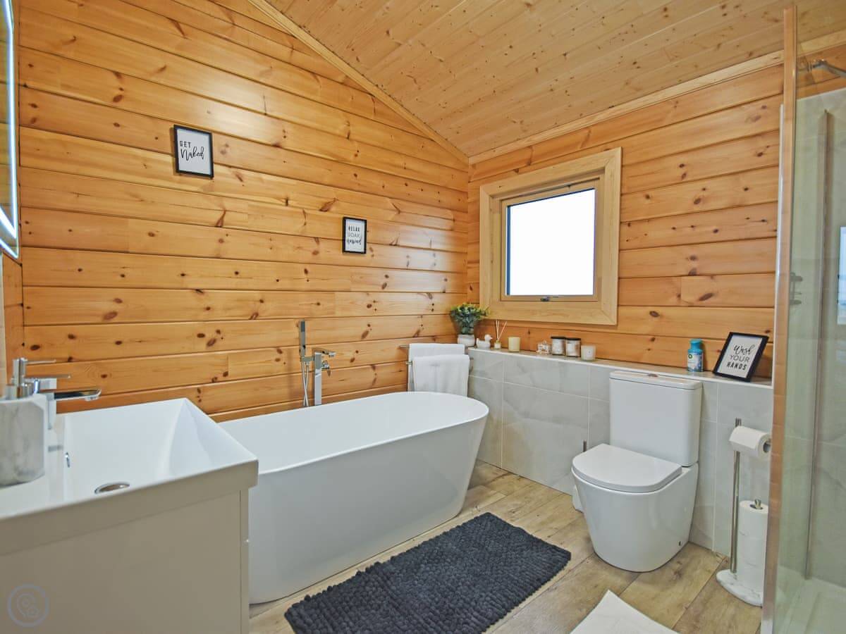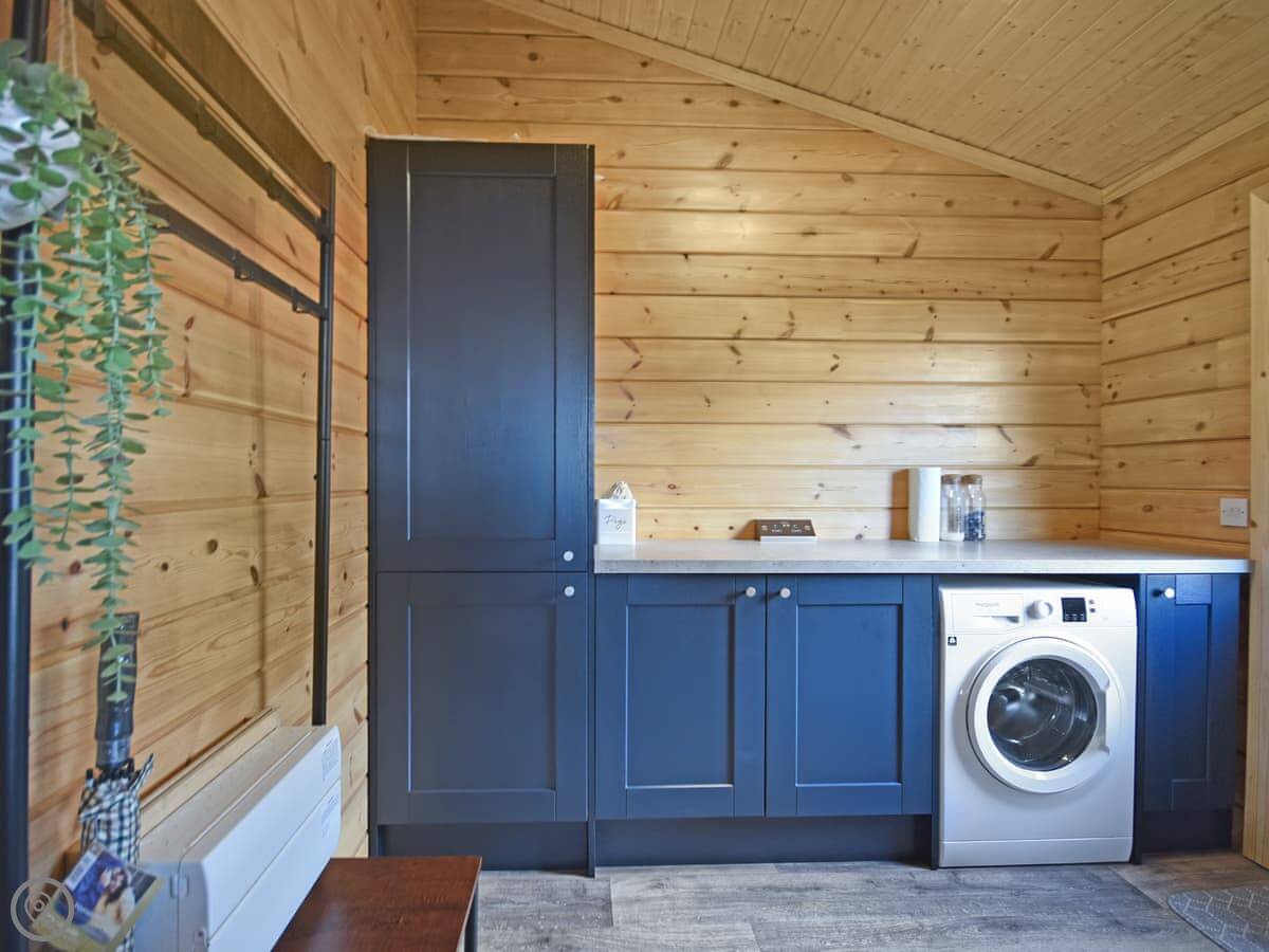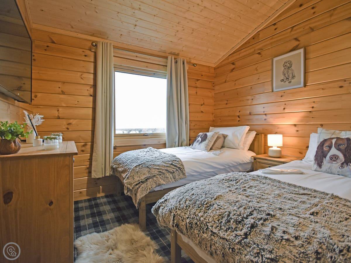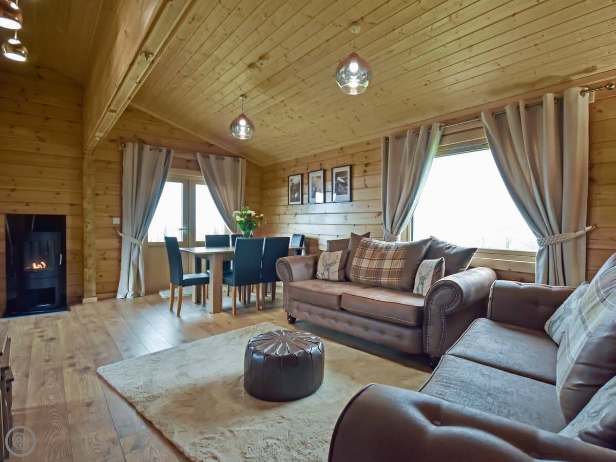 The lodge has underfloor heating. It's got a dishwasher, a washing machine, and a tumble dryer. There's an electric vehicle charger on site. You can bring up to two dogs. There's a cot, a highchair, and a stairgate if you need them.
