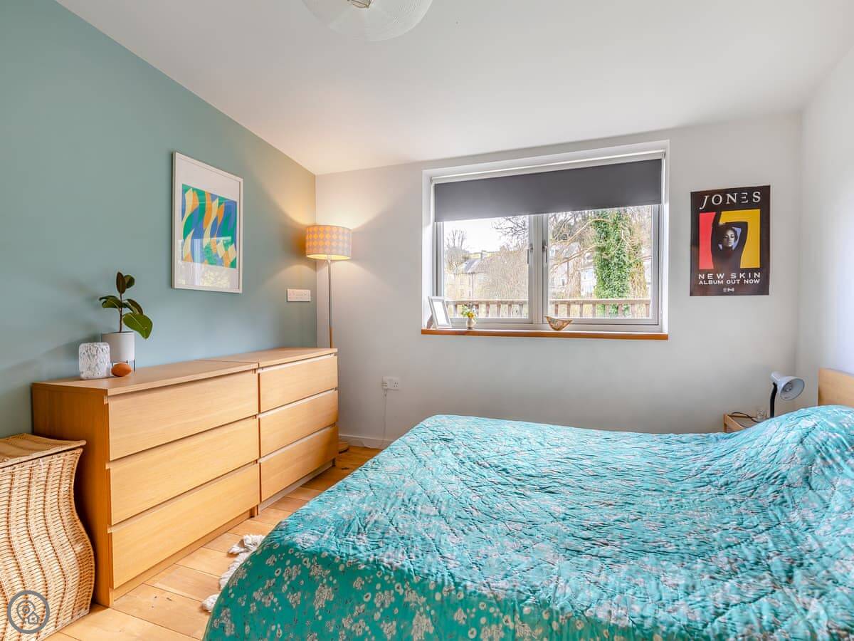 Earthspring Flat is a self-contained apartment above a garage on the edge of Totnes. It's modern, timber-clad, an eco-build. It's for two people.