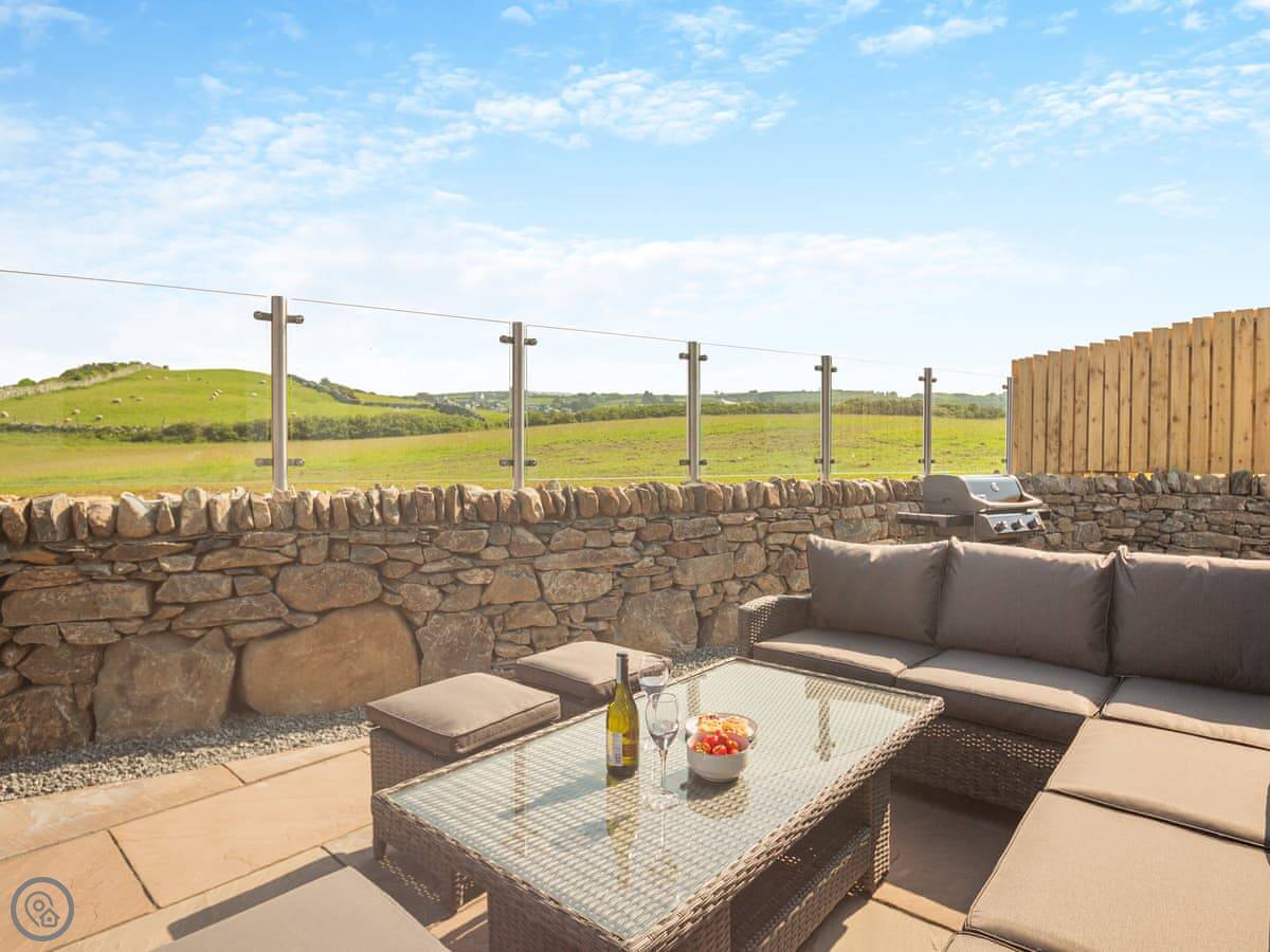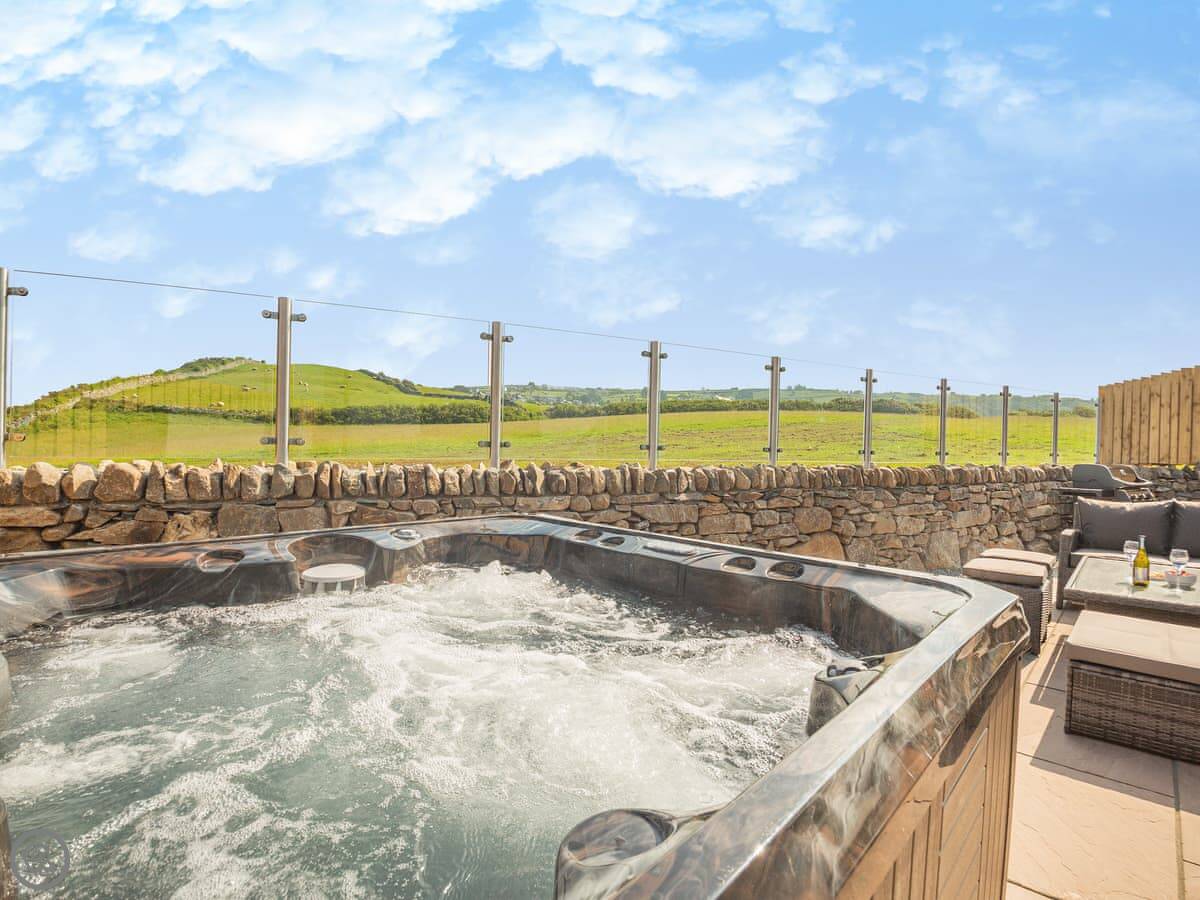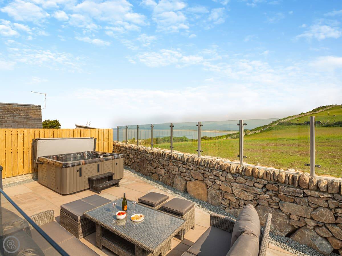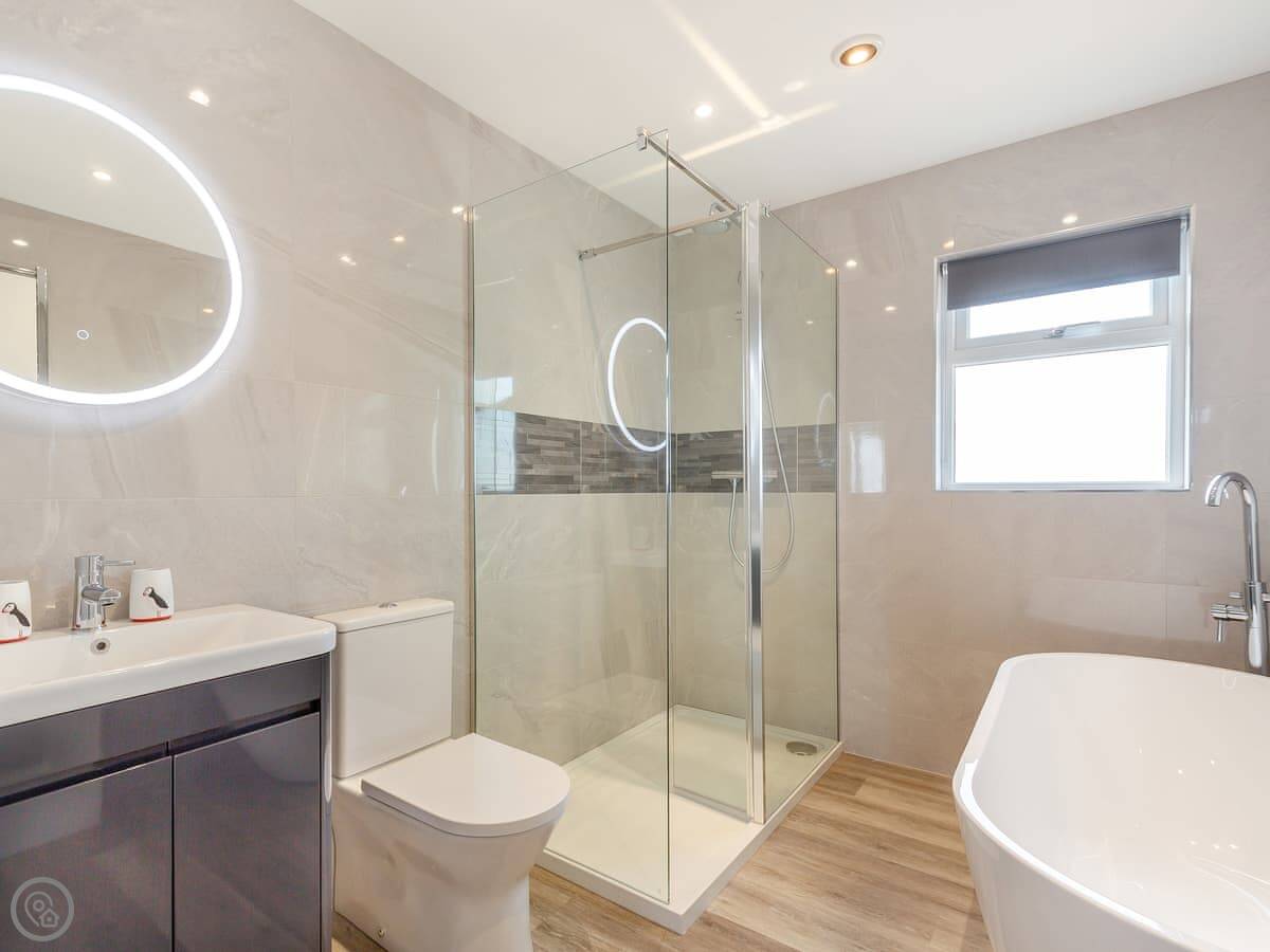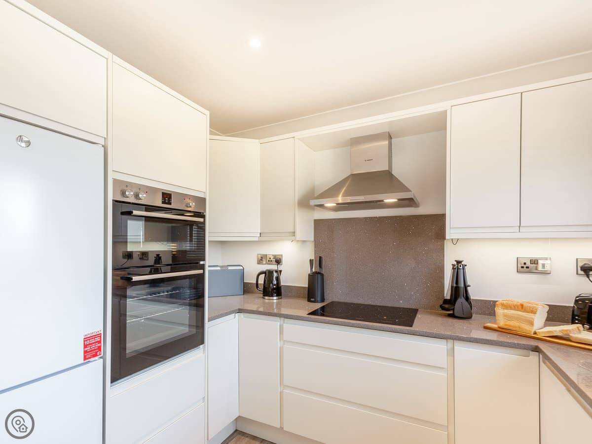 Outside is an enclosed garden with a patio, a barbecue, and a hot tub. You can fit two cars on the drive, and there’s an electric vehicle charger.