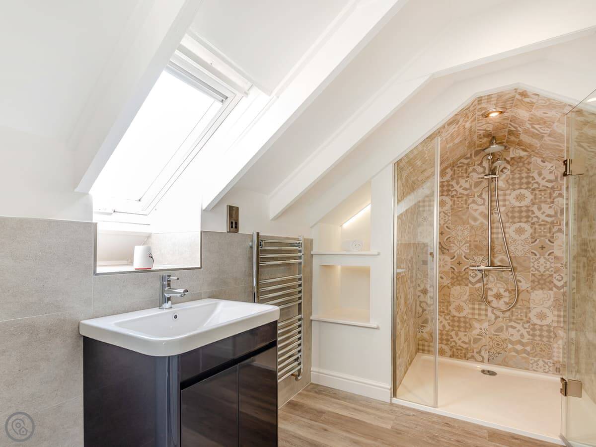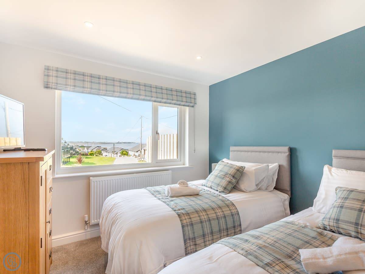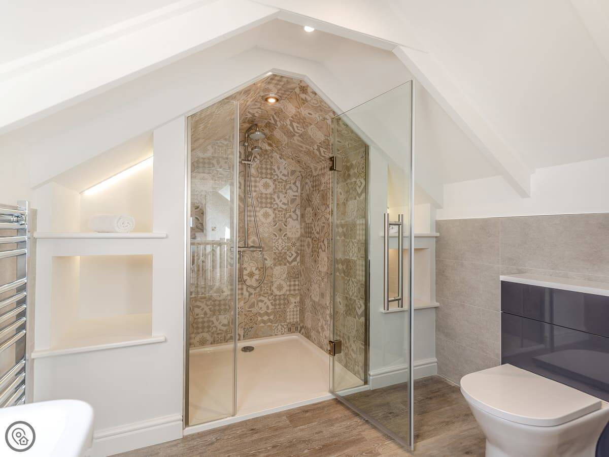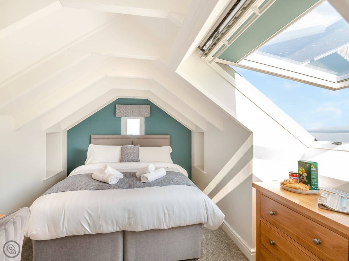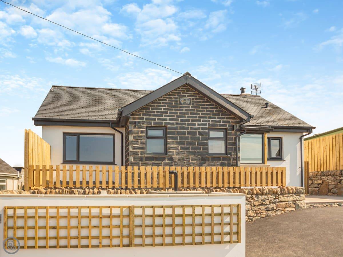 Goppa is a detached cottage in Llandanwg, just above Harlech in North Wales. It’s a 5 Star place, so it’s comfortable and well-equipped. It sleeps six in three bedrooms. Two bedrooms are downstairs, with a family bathroom. Upstairs is the main bedroom with its own en-suite. The stairs are typical cottage stairs, so they’re a bit steeper and narrower than you get in a modern house.