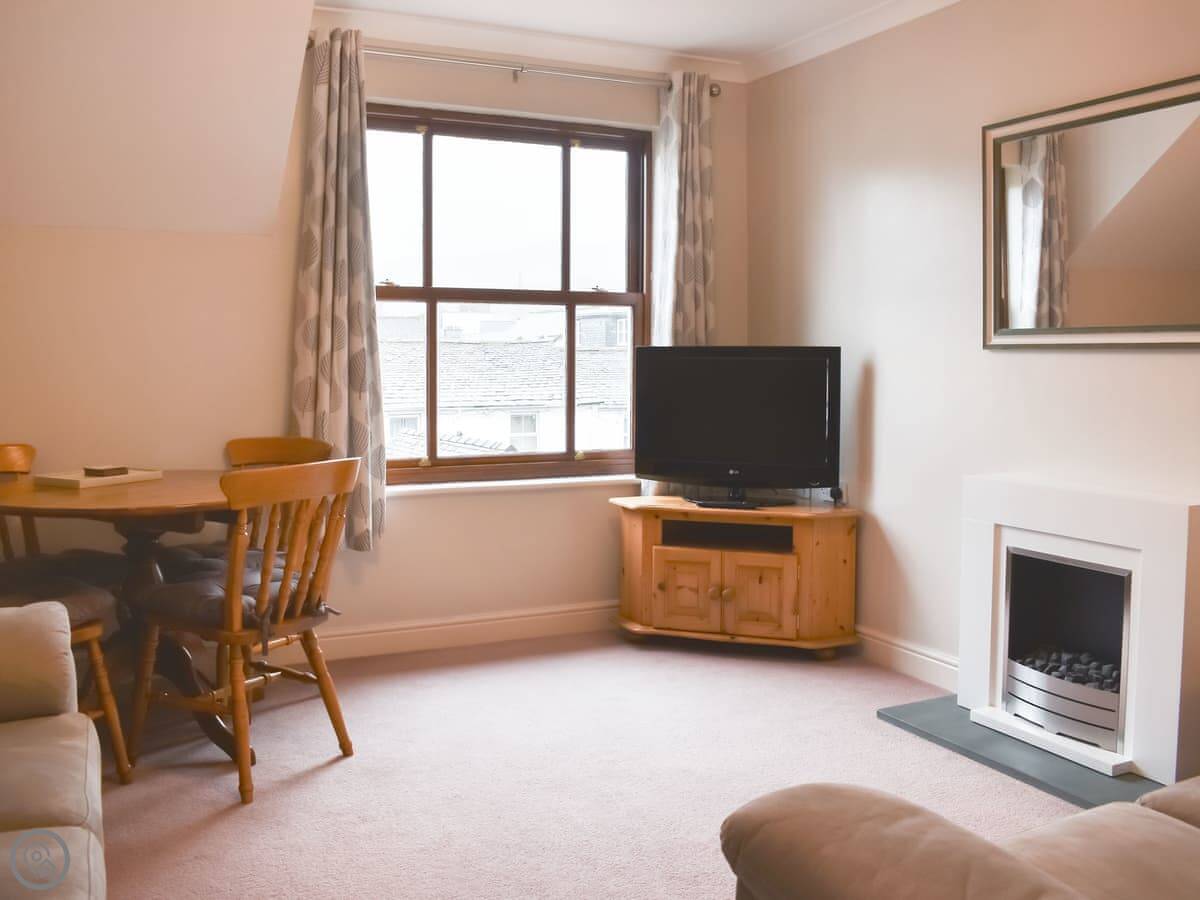 The views from the windows are good. You look out across the rooftops towards the fells. The living area is compact but it's fine for two.
