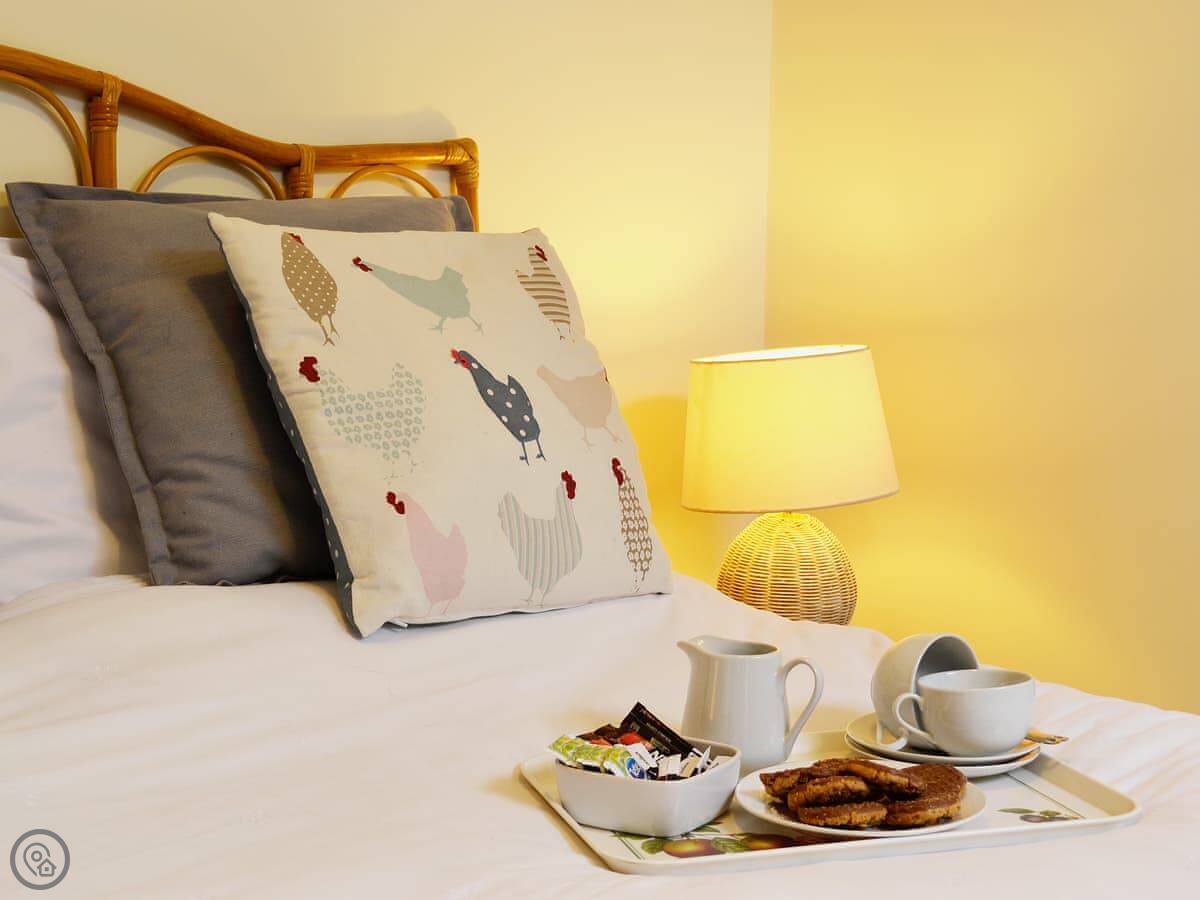 In terms of what's here: all the bedding and towels are included. There's a dishwasher, WiFi, and a TV. There's a cot and a highchair if you need them. It has an electric vehicle charger. No pets, sorry.