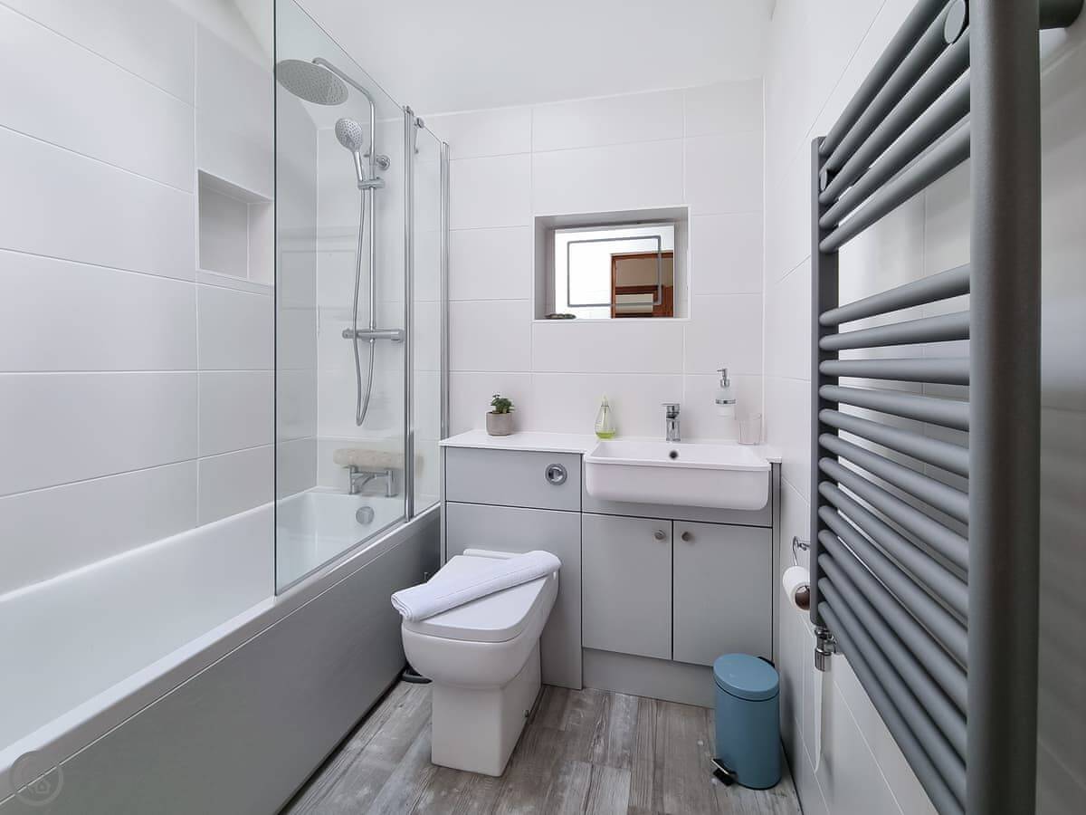 It's a quiet spot. You're a couple of minutes' drive from the A5, so it's easy to get to, but you don't hear the road. Betws-y-Coed is about five minutes away by car. They've got shops, places to eat, and a train station there.