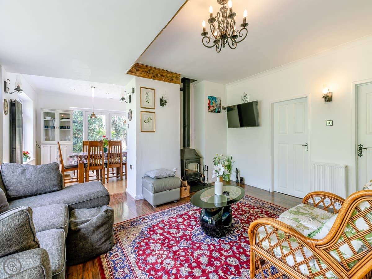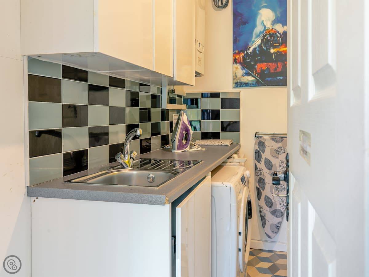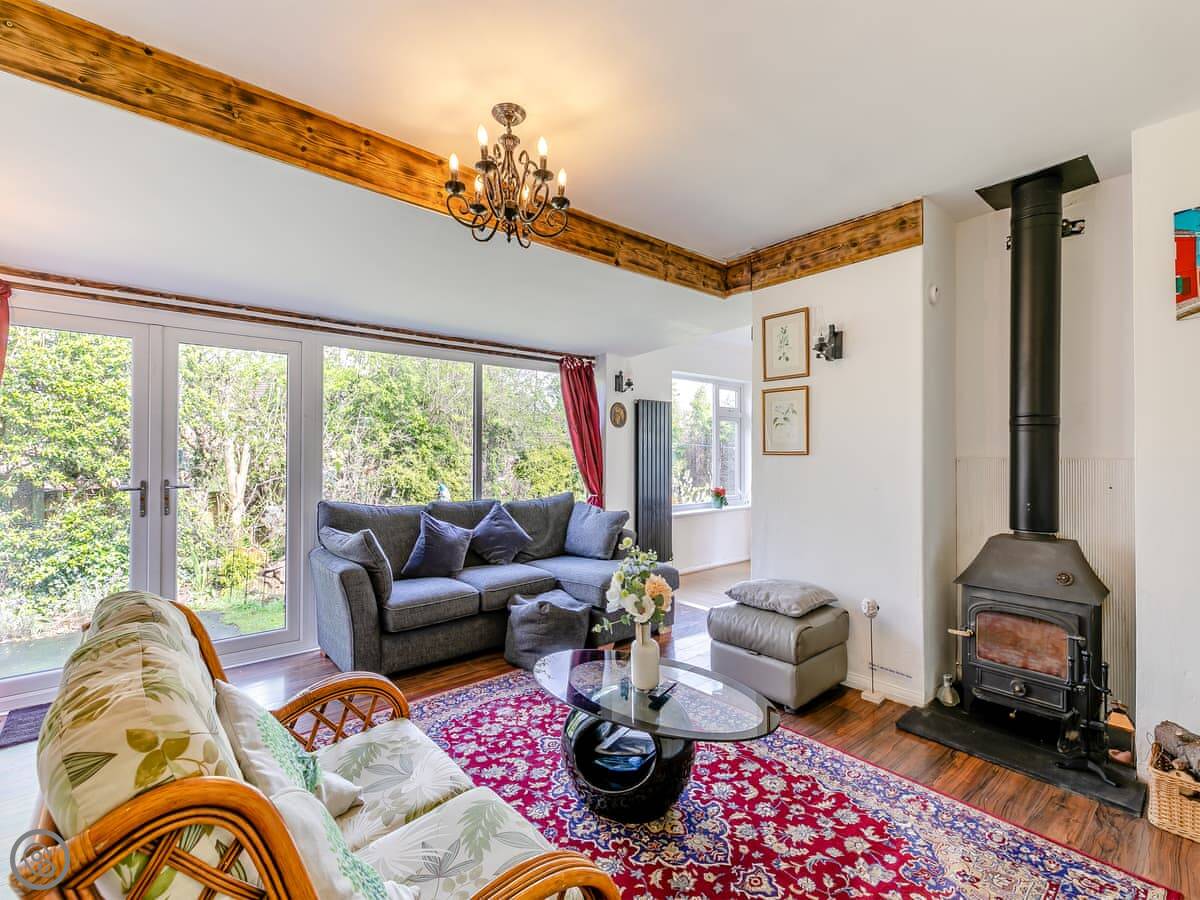 Inside, there's a wood burning stove in the living room. It works well and there's a supply of logs. The kitchen has what you'd need, including a washing machine. WiFi is reliable. Parking is on the drive for two cars.