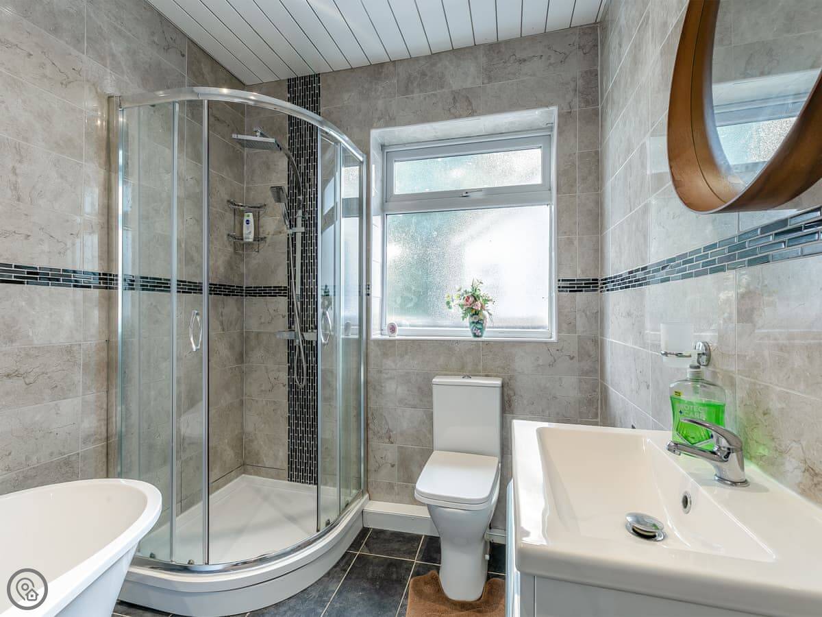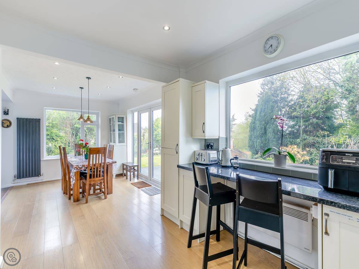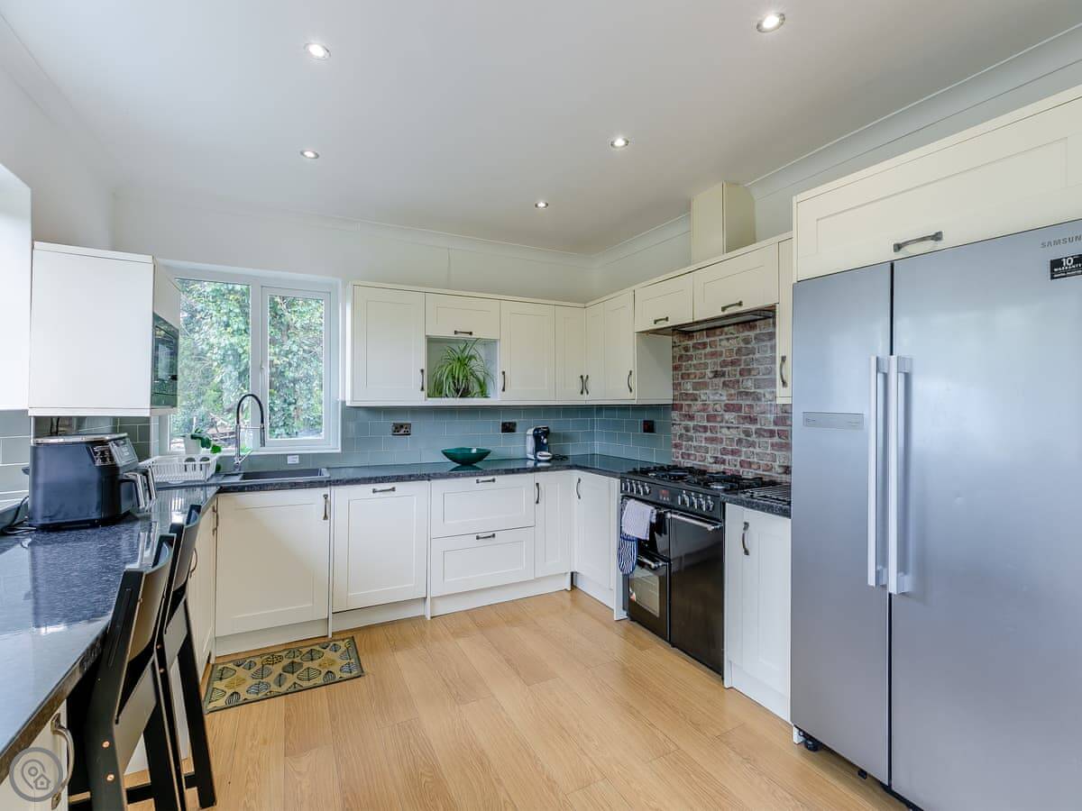 Inside, there's a wood burning stove in the living room. It works well and there's a supply of logs. The kitchen has what you'd need, including a washing machine. WiFi is reliable. Parking is on the drive for two cars.