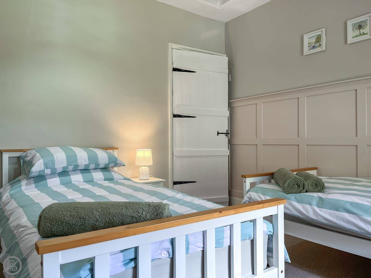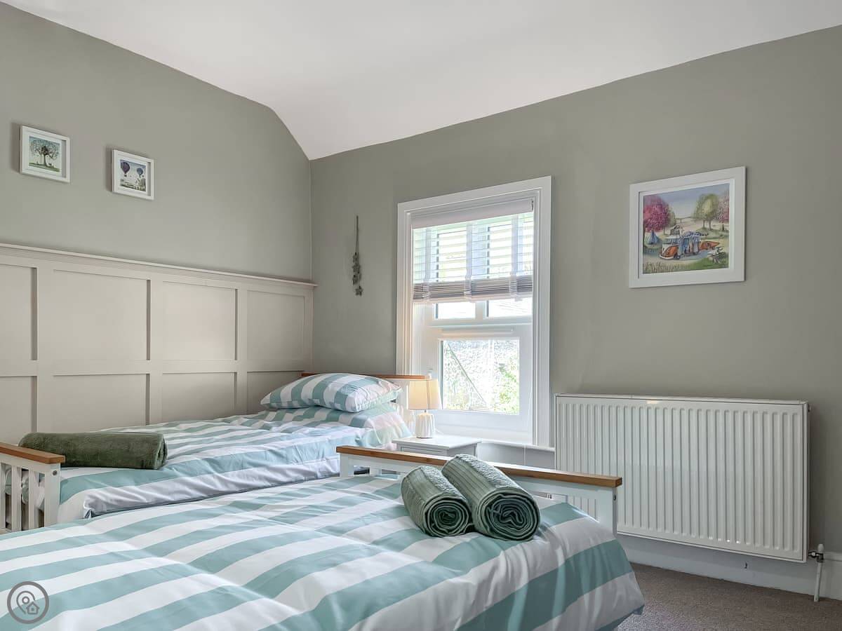 It sleeps four. Two bedrooms upstairs, one with a double bed and one with two singles. The bathroom is downstairs, just a shower. It's a 4 Star place, so it's comfortable and well looked after. The stairs are steep and narrow, like most of these old cottages.