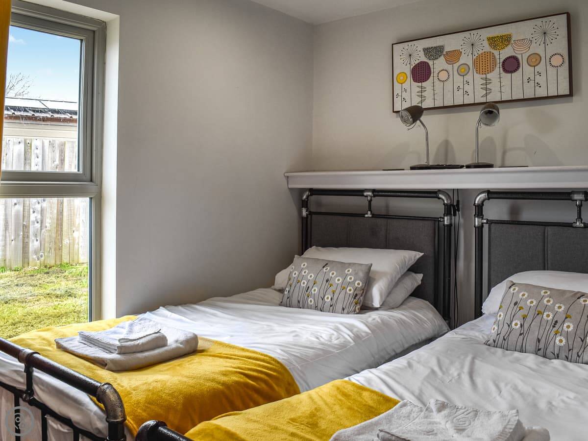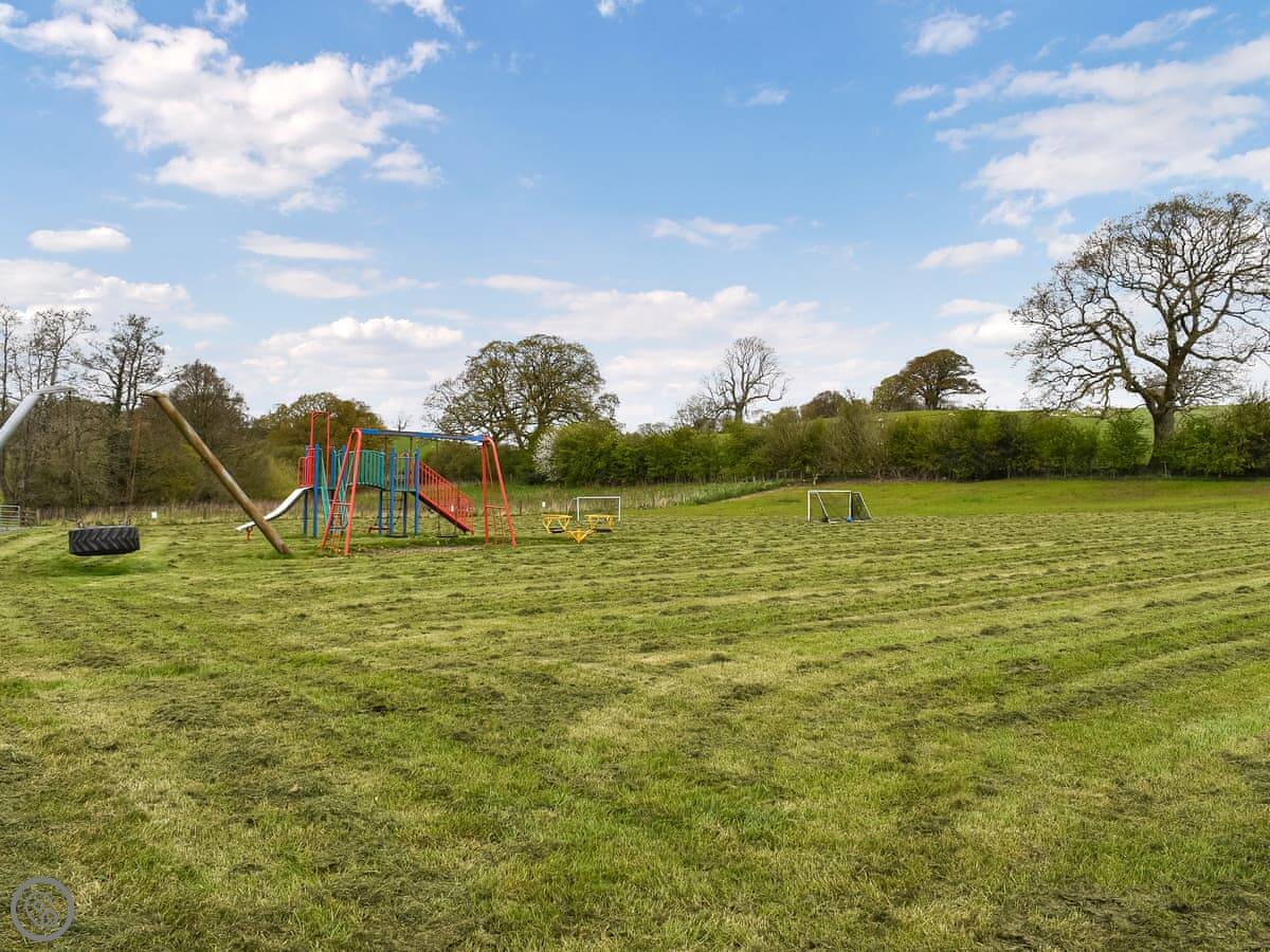 A few practical things: it's a no-pets property. The garden is enclosed. There's a kids' play area on site shared with the other lodges.