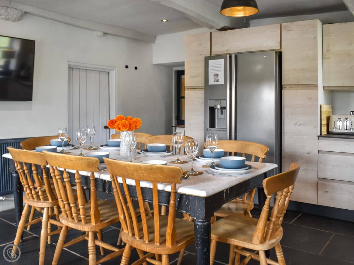 Box Tree Farmhouse is in Wennington, Lancashire. It's a detached house, set back from the road in the fields. It sleeps ten people. There are four bedrooms and three bathrooms.