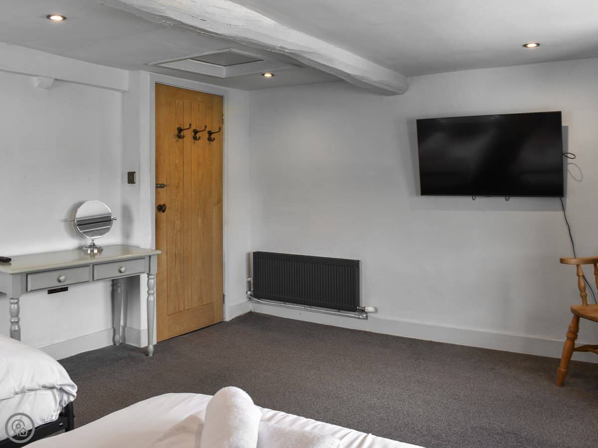 The inside has been done up recently. It's bright and colourful. The main living room has a wood burner and a big TV. The kitchen has a range cooker and a large table that seats everyone. Each bedroom has its own TV.