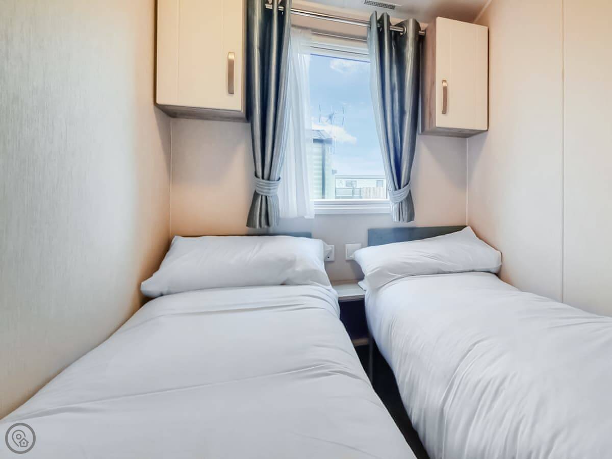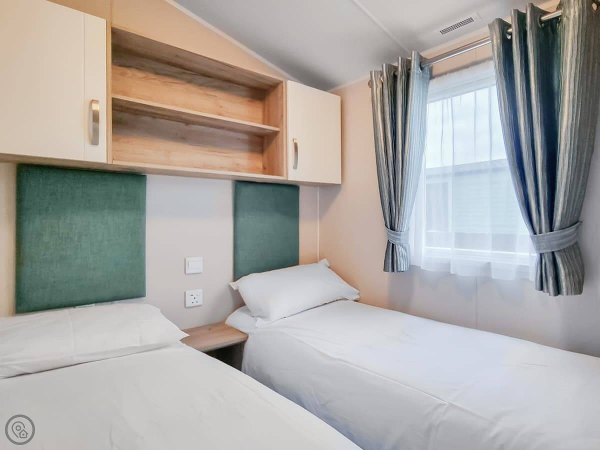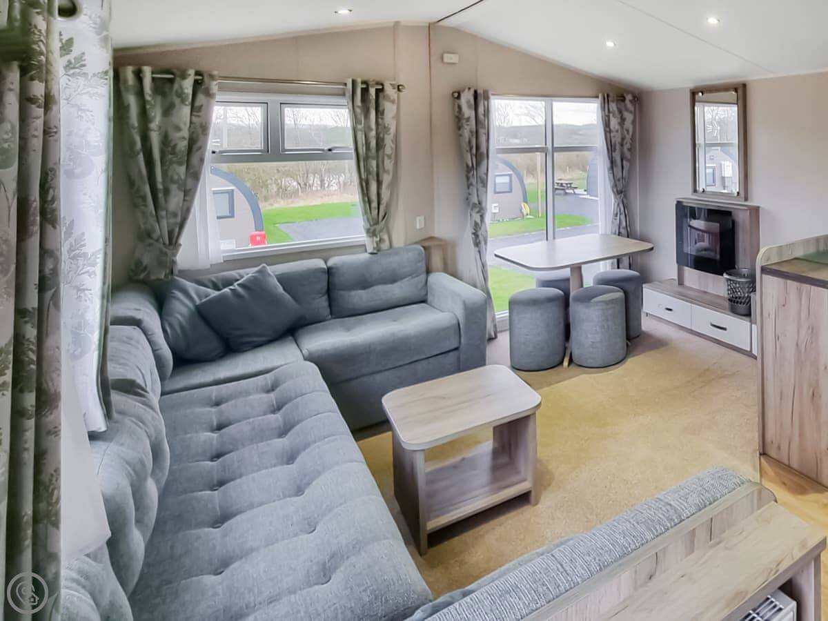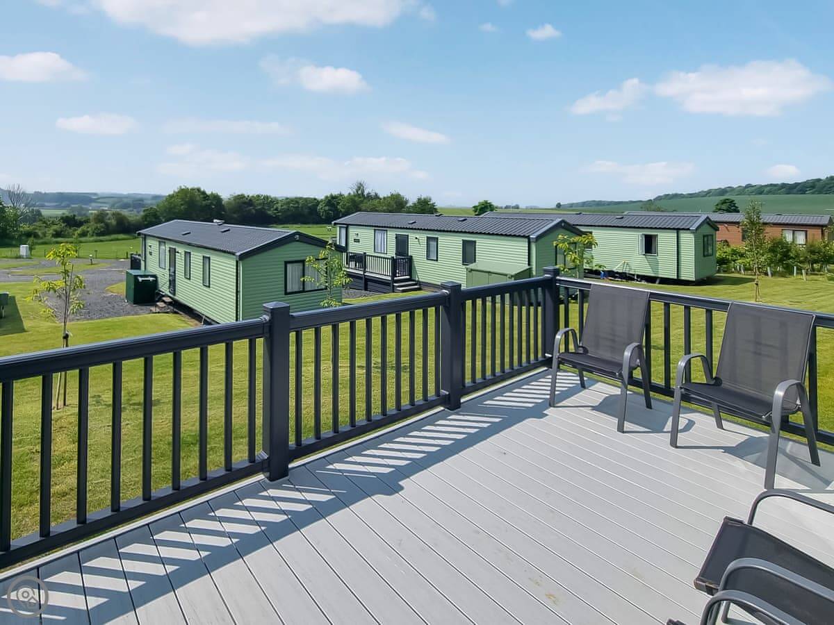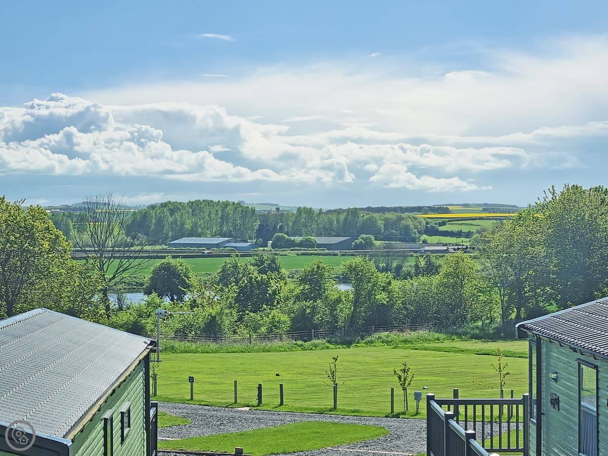 This is Skye. It's a three bedroom holiday home on a park in Coldstream. It's detached and looks out over the River Tweed. The view is the main thing.