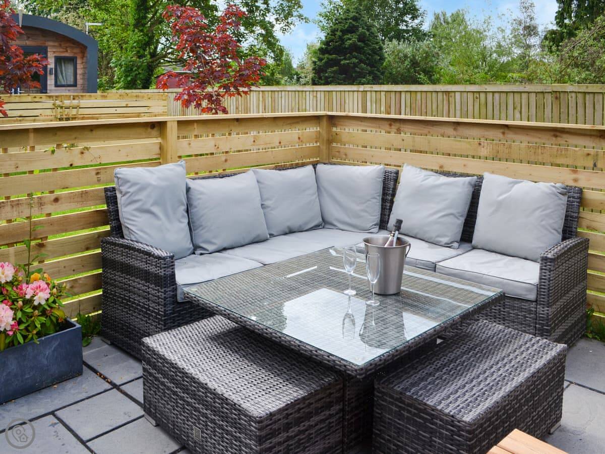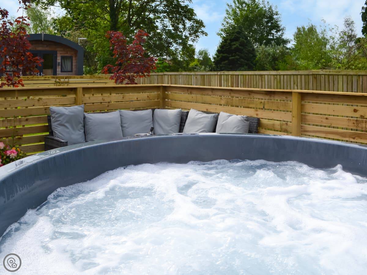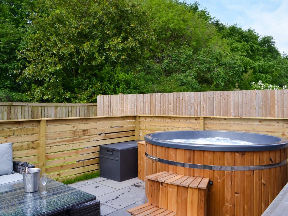 Facilities: the hot tub, your own patio, parking right there, WiFi, a TV. Bedding and towels are included. There's bike storage if you need it. No pets.