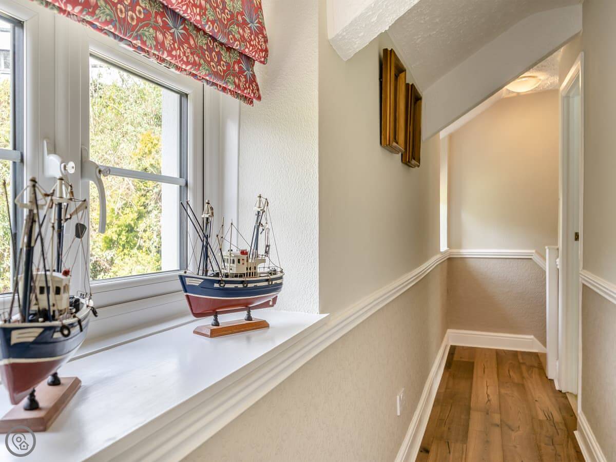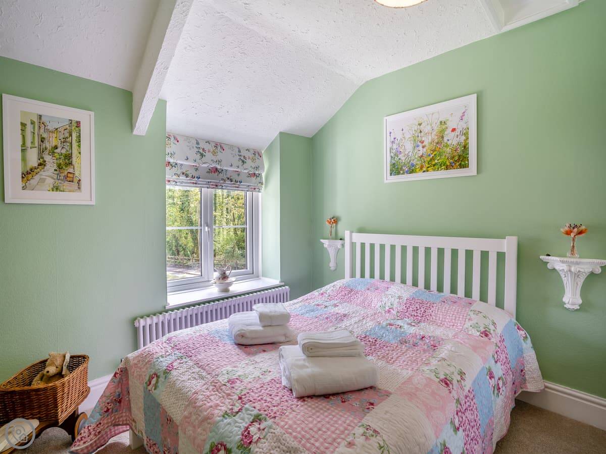 It sleeps four. Two bedrooms, both doubles I think, and two bathrooms, both with showers. The main bedroom is upstairs, the other is on the ground floor. It's got a 5 Star rating. It's comfortable.
