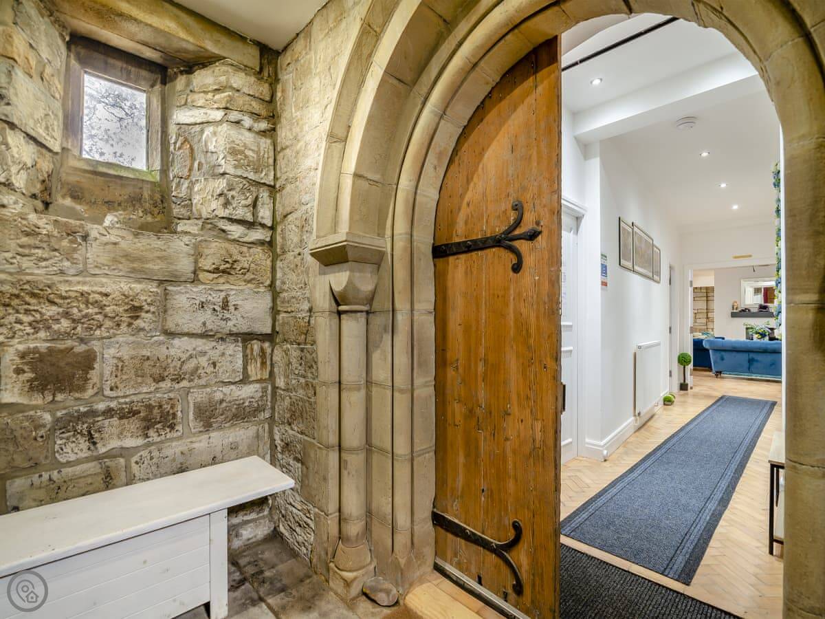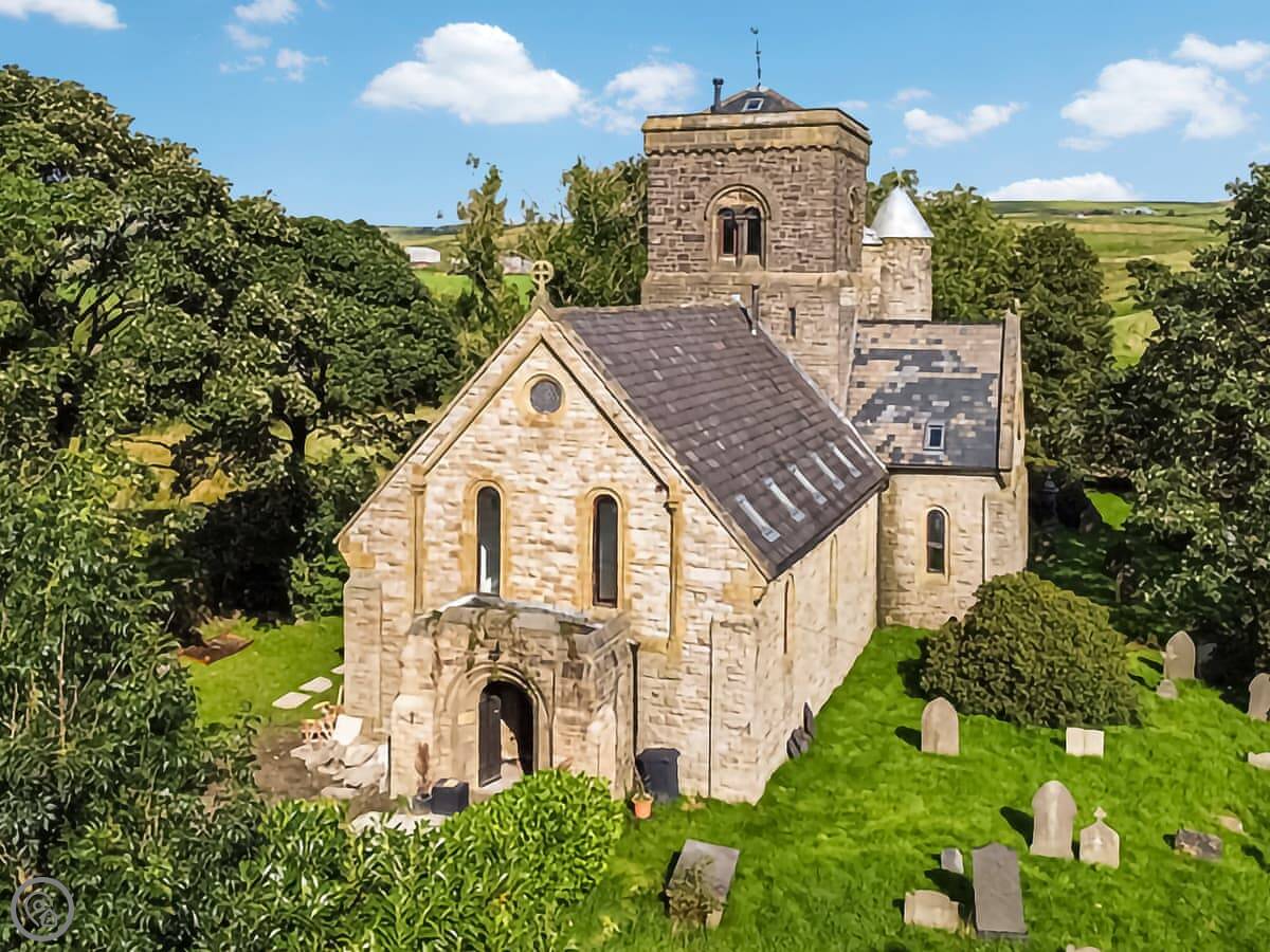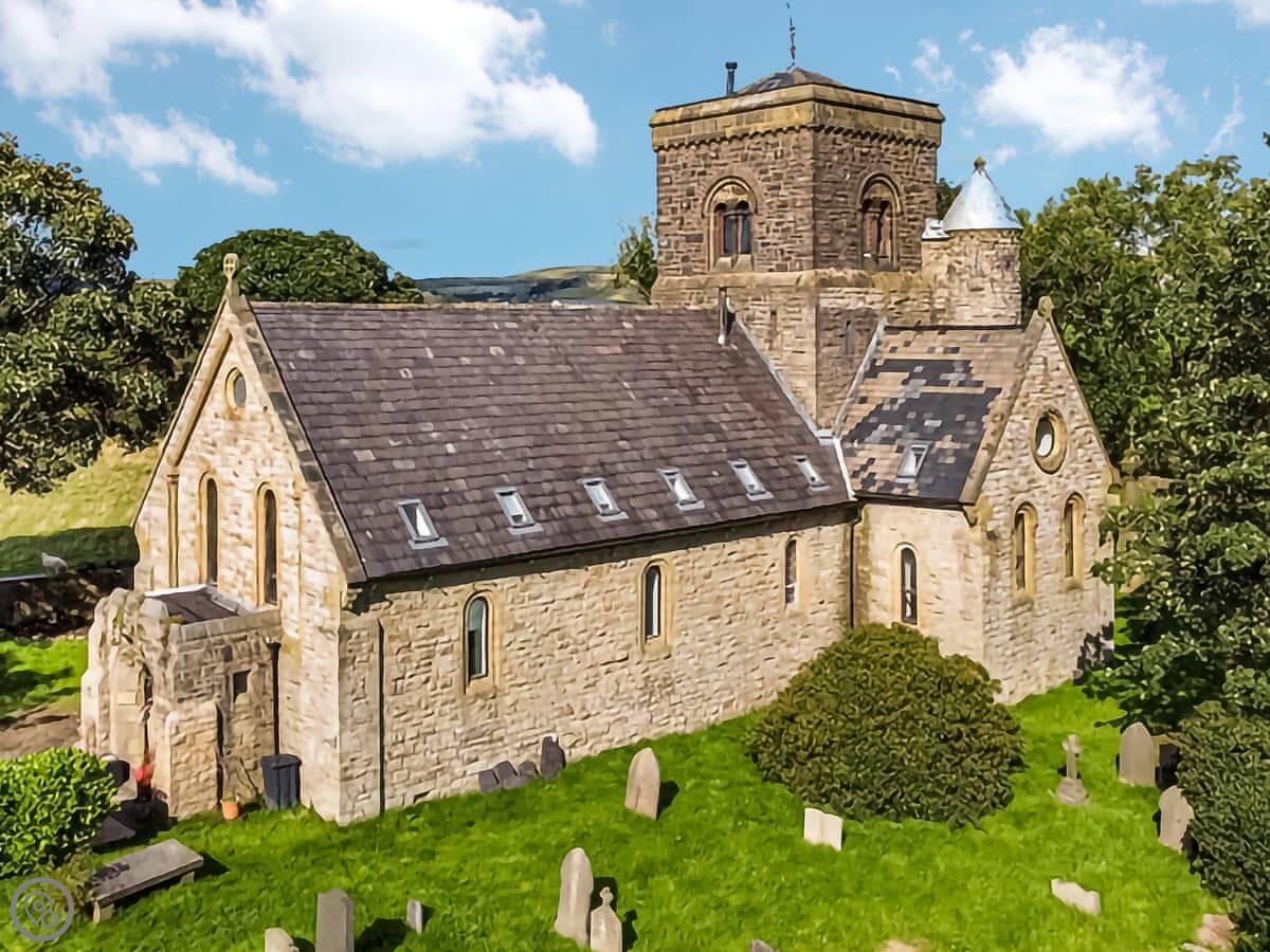 The Old Church is in Water, Lancashire. It's a converted church, so it's a big, tall building. It sleeps ten people in five bedrooms. There are two bathrooms.