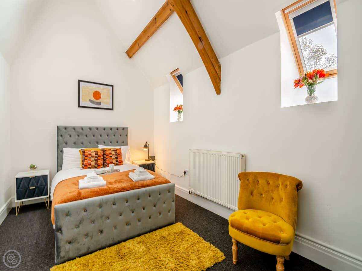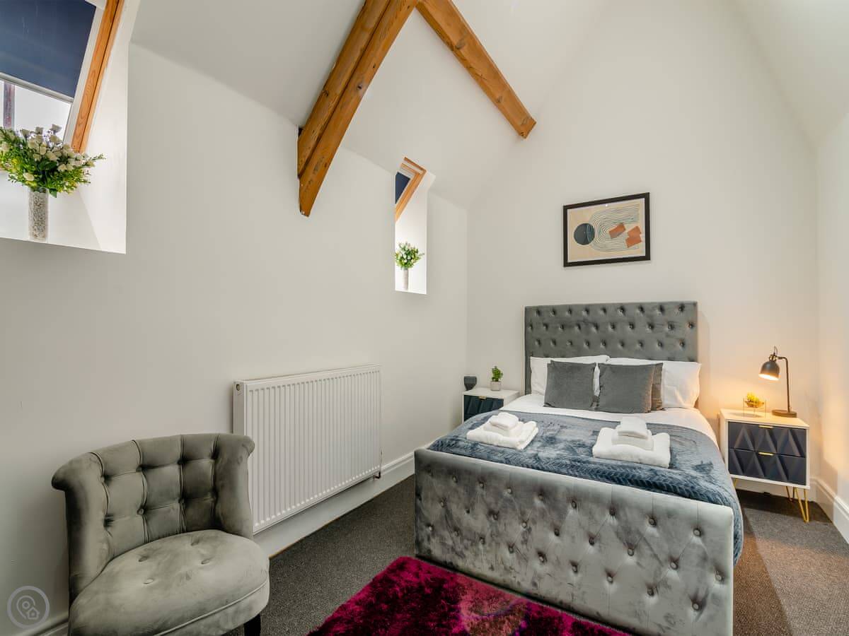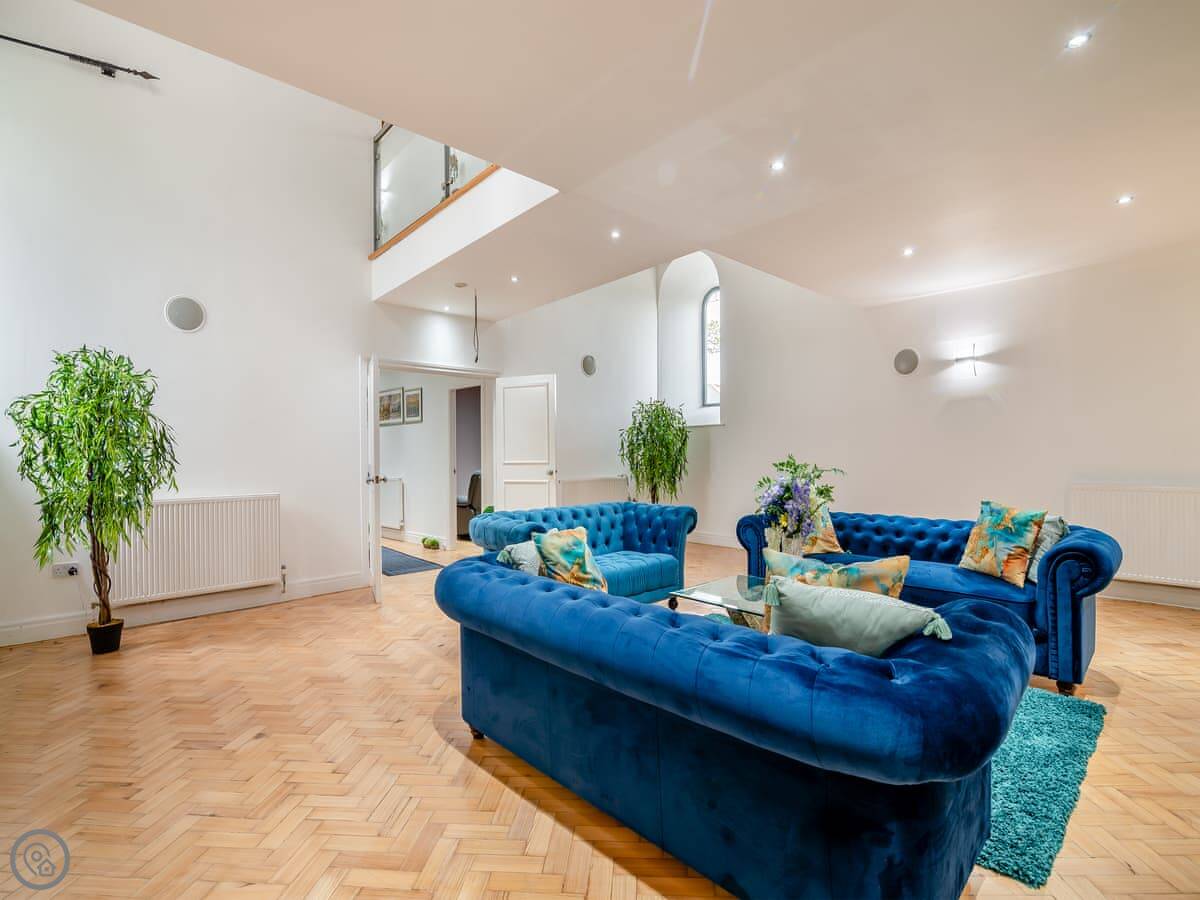 The Old Church is in Water, Lancashire. It's a converted church, so it's a big, tall building. It sleeps ten people in five bedrooms. There are two bathrooms.