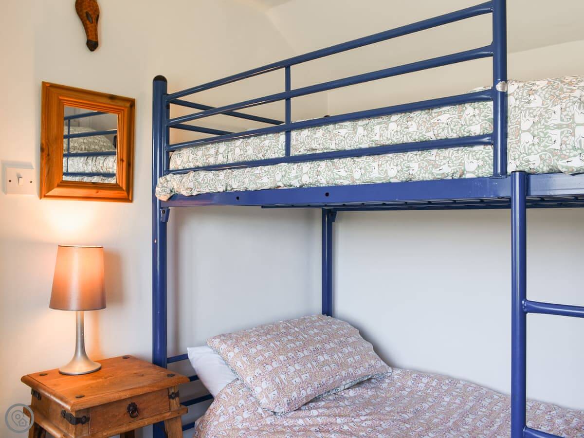 It's a two bedroom cottage for four people. One room's got a double bed, the other has bunk beds. There's one bathroom with a walk-in shower. It's rated 4 Star. It's comfortable and well-equipped.