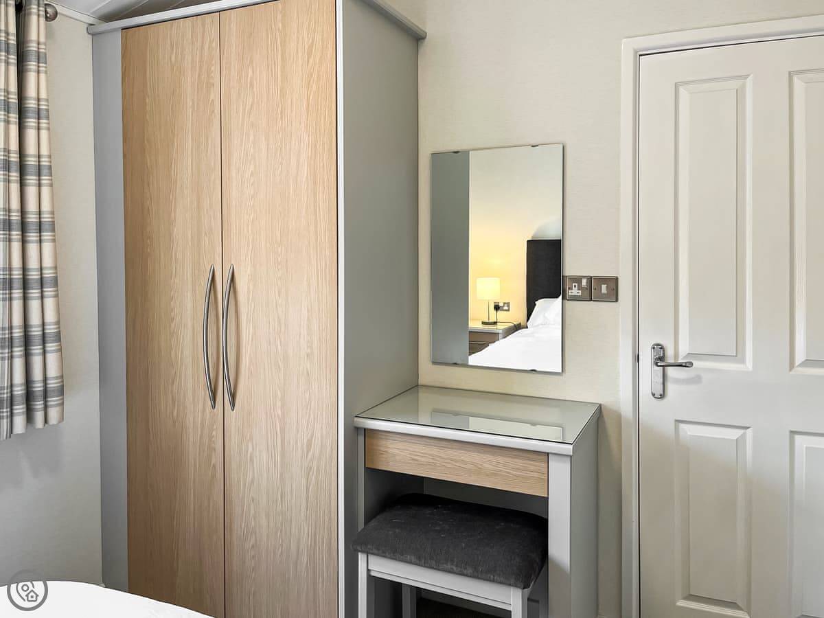 Meadow View 16 is a lodge on Mullacott Park, near Ilfracombe. It’s detached, so no one is sharing any walls with you. You get three bedrooms and two bathrooms, which is handy with six people. One bedroom has its own shower and a walk-in wardrobe.