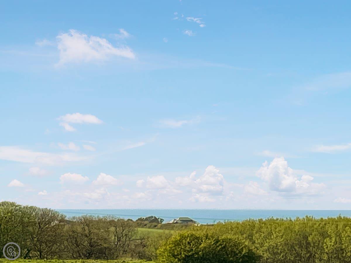 The decking outside is a good size and has a glass balustrade so the view isn’t blocked. You look out over fields and can see the sea in the distance. It’s a quiet spot.