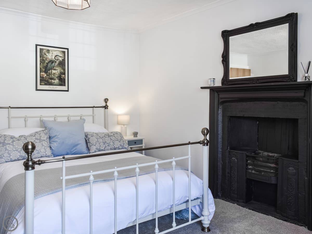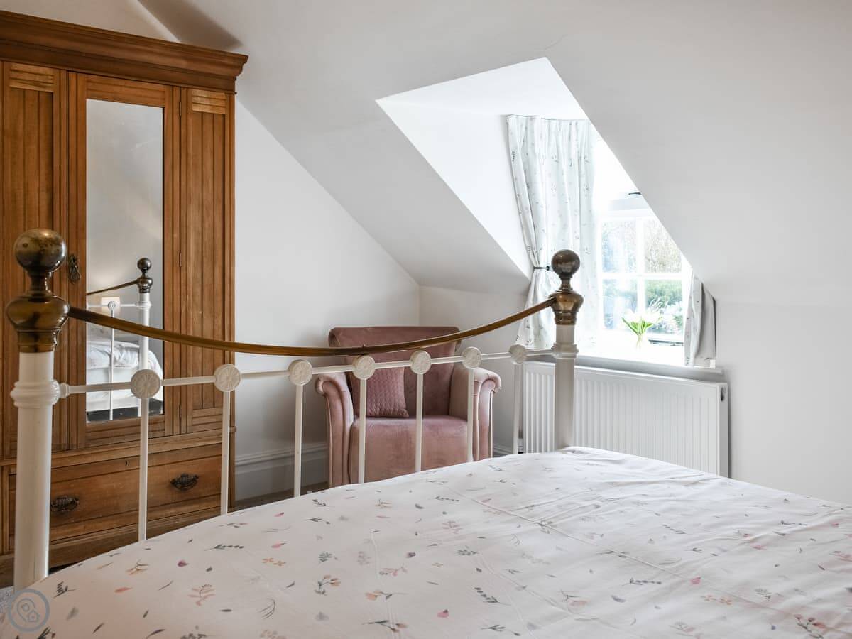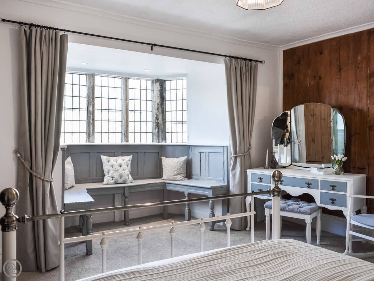 It sleeps four. Two bedrooms and one bathroom. The bathroom is downstairs. It has a 4 Star rating. One bedroom has a kingsize bed and a window seat. The other is a standard double.