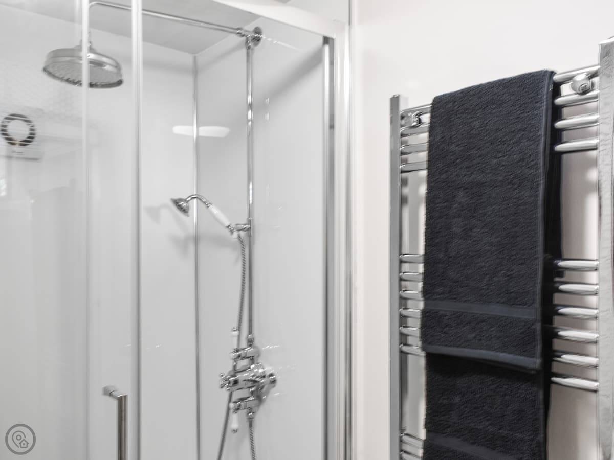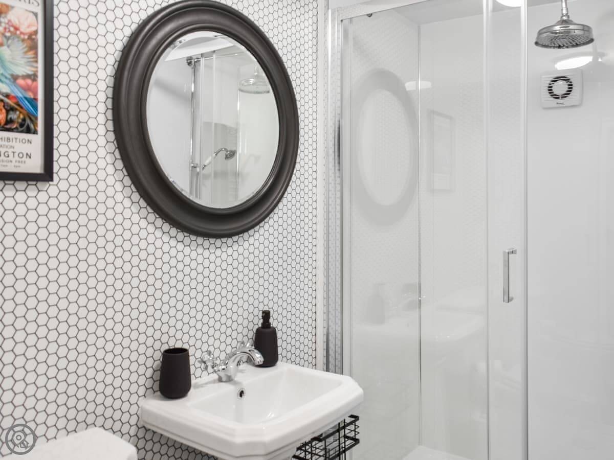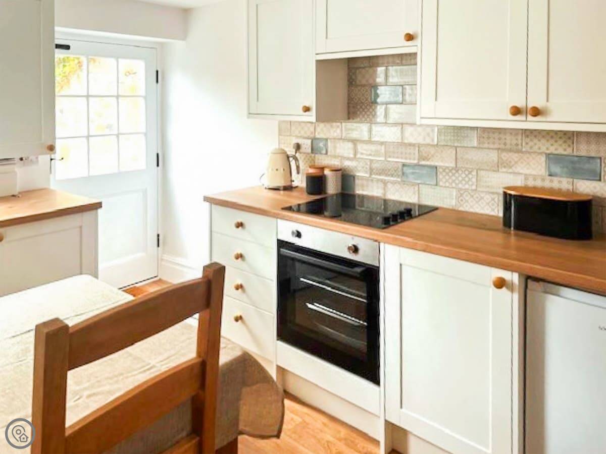 It sleeps four. Two bedrooms and one bathroom. The bathroom is downstairs. It has a 4 Star rating. One bedroom has a kingsize bed and a window seat. The other is a standard double.