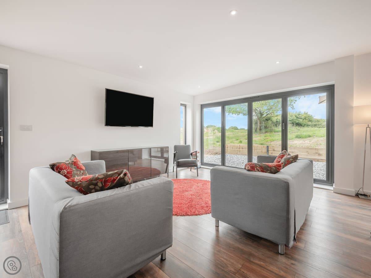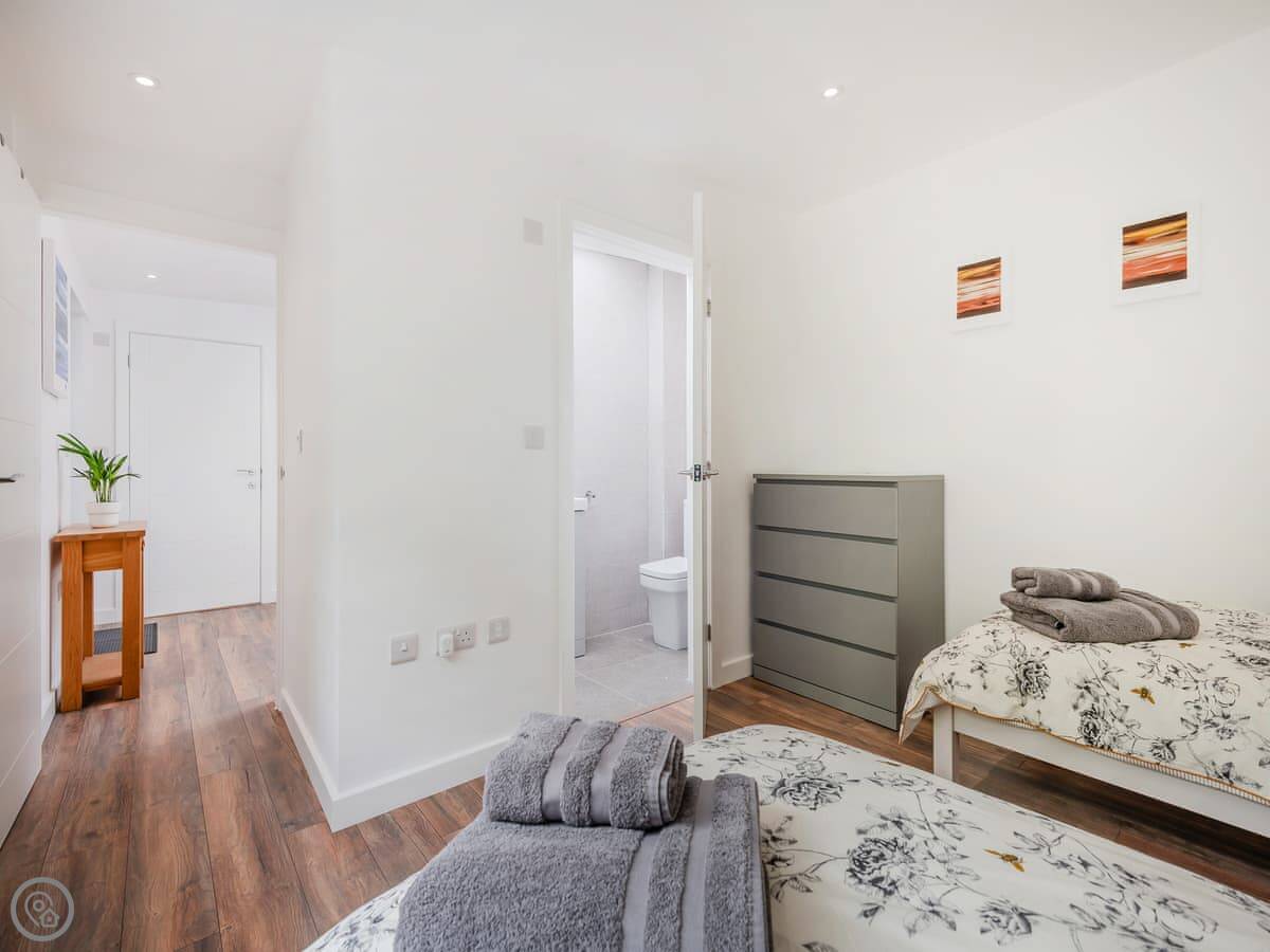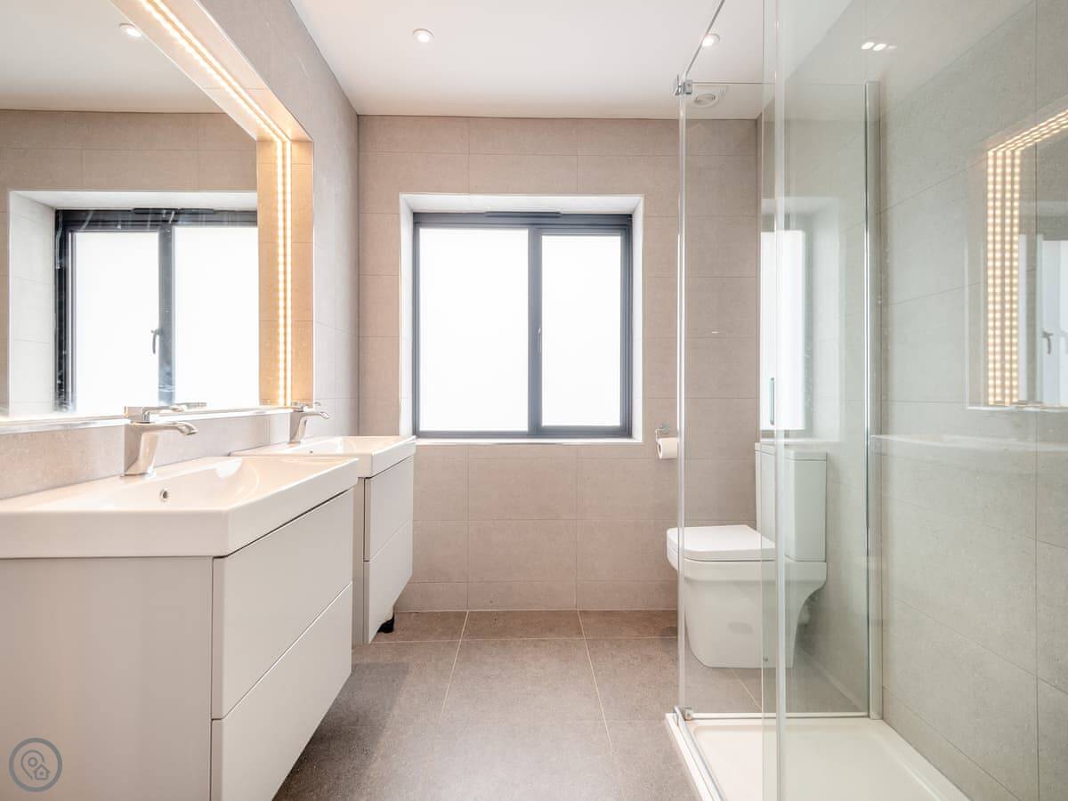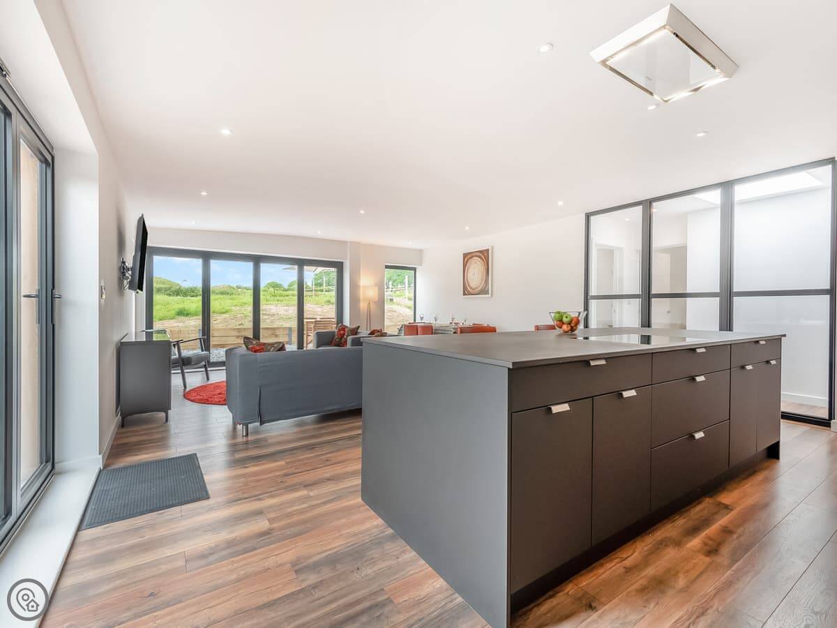 It sleeps six people. Three bedrooms, each with its own shower room. It's a 4 Star property, so it's well finished and comfortable. It's pet friendly, takes up to two dogs.