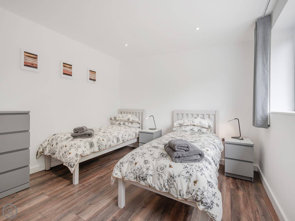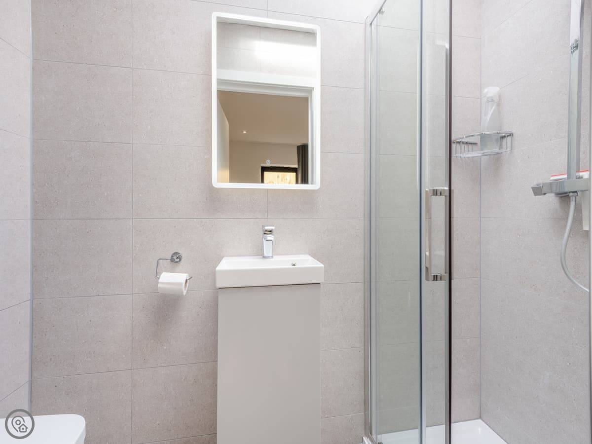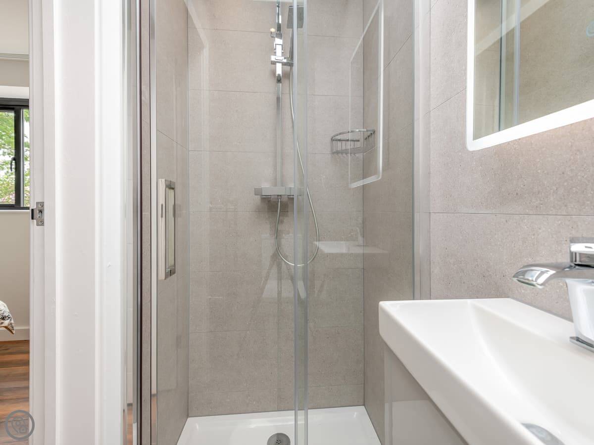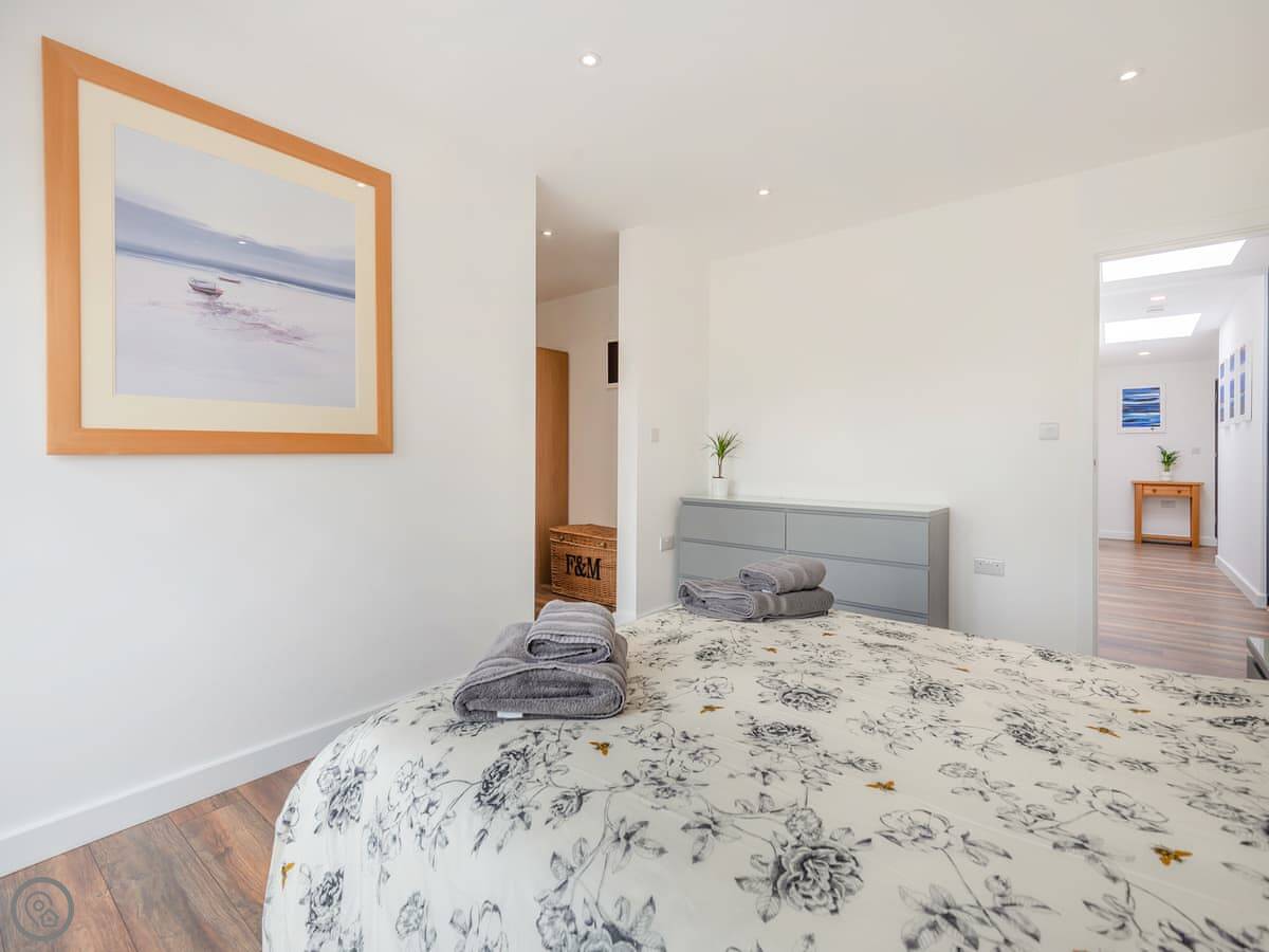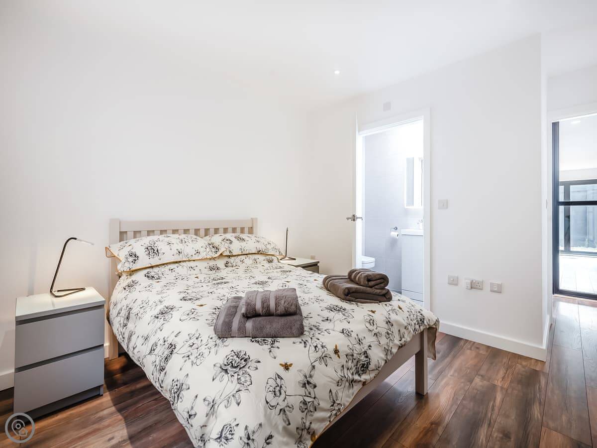 It sleeps six people. Three bedrooms, each with its own shower room. It's a 4 Star property, so it's well finished and comfortable. It's pet friendly, takes up to two dogs.