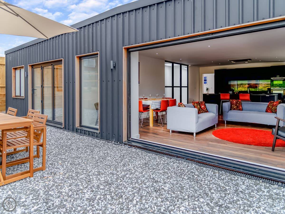 The Dairy is in Mannington, near Wimborne. It's a converted barn, a modern one. Detached, so it's just you. It's got views over fields and farmland.