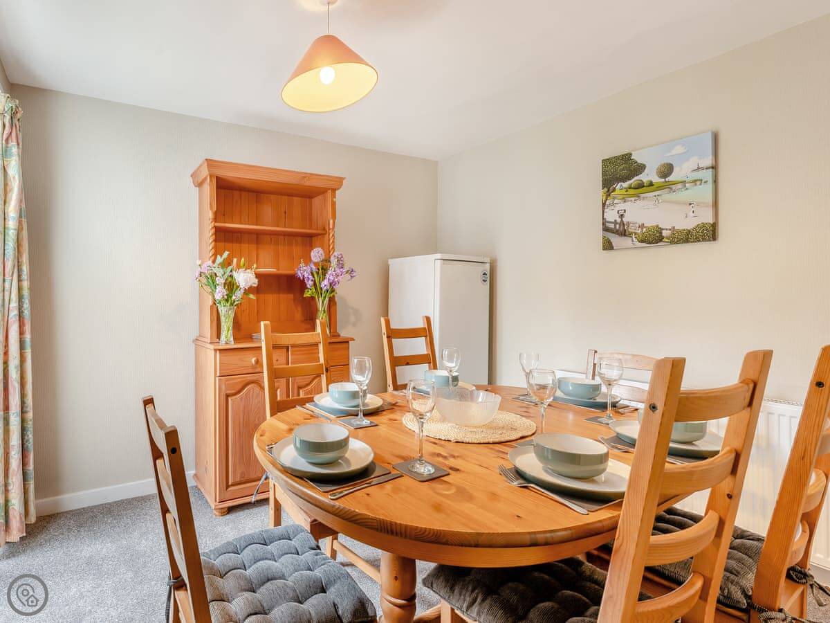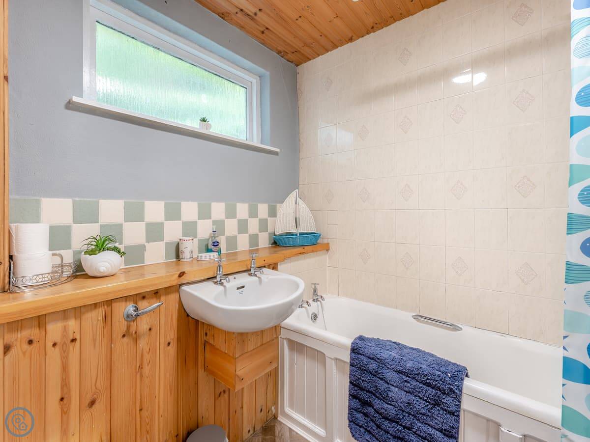 There's one double bedroom on the ground floor, which is handy. The bathroom is downstairs too, with a shower over the bath. The living room is spacious and the dining room has patio doors.