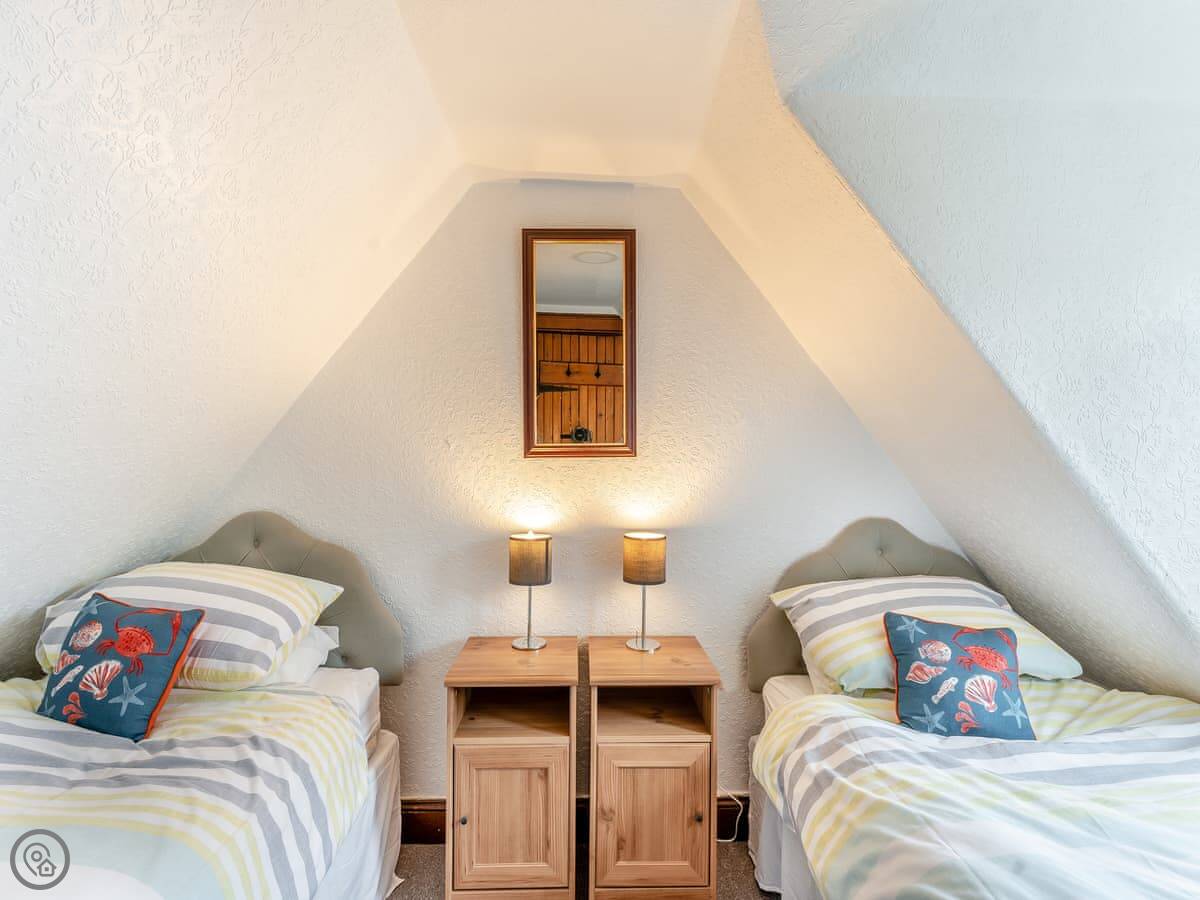 It sleeps six. Three bedrooms, one bathroom. It's got a 4 Star rating. It's comfortable and clean. The stairs are normal, but they're cottage stairs, so mind your head.