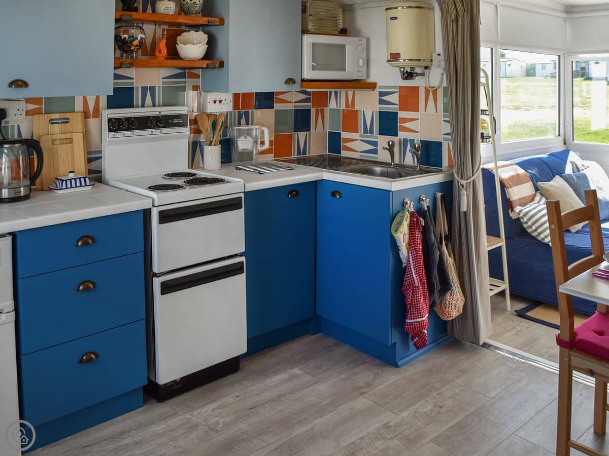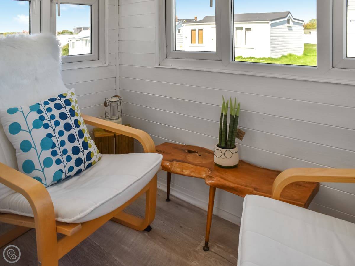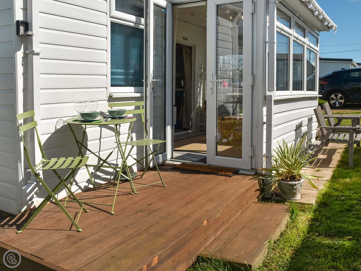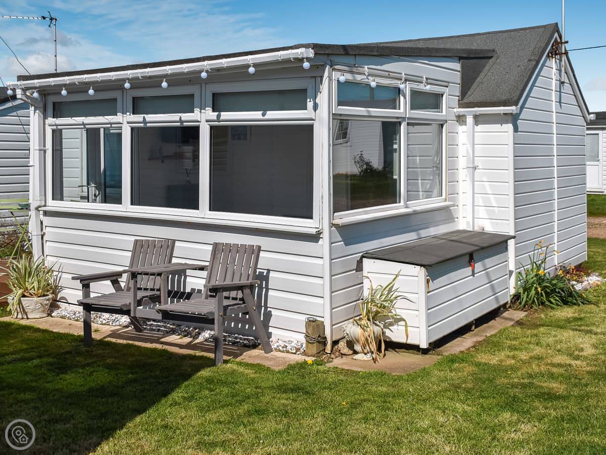 Rosy's Retreat is a detached chalet in Bacton. It's on a small private estate with other similar lodges, but it's detached so you've got your own space. It's a single-storey place, so no stairs at all.